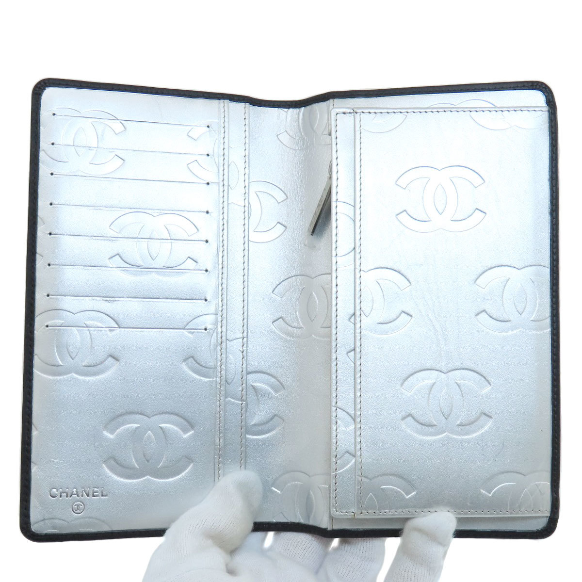 CHANEL シャネル カンボンライン シルバー金具 長財布(小銭入れあり) カーフ レディース 中古