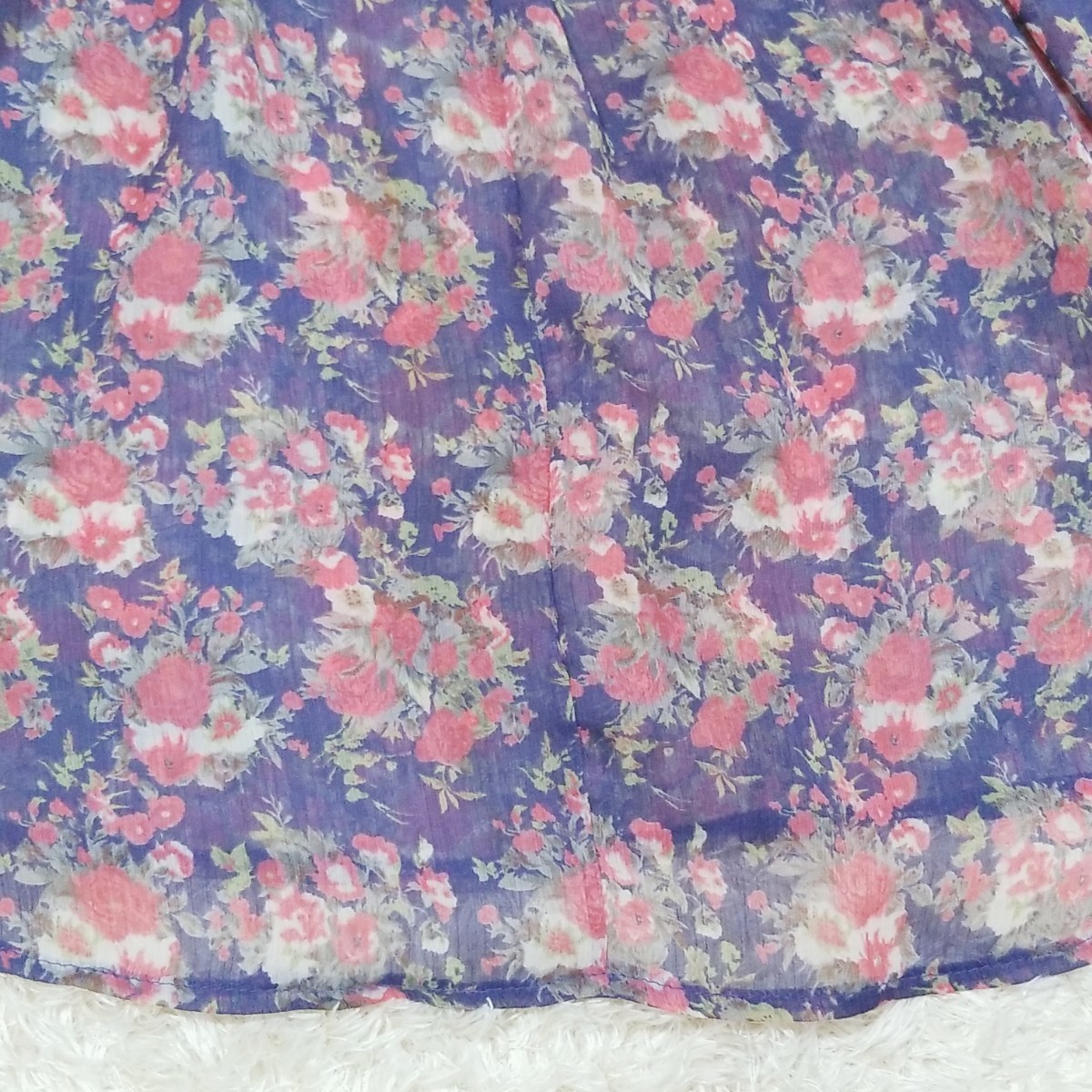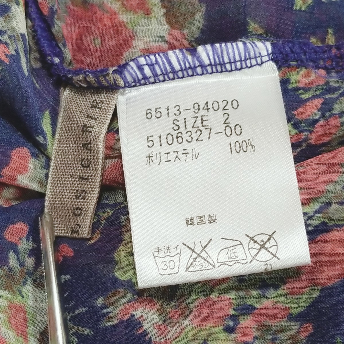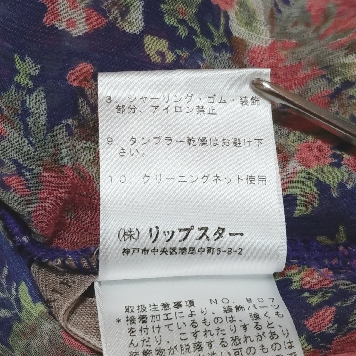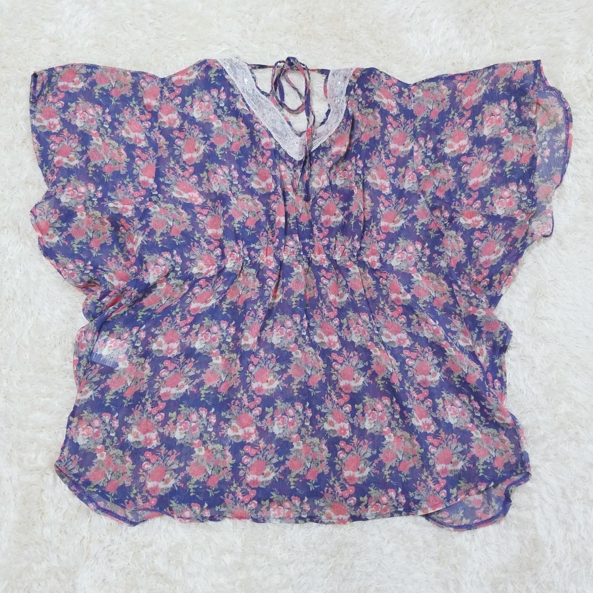 ★美品★シアーチュニック キラキラVネック フリル袖 ネイビー 花柄 日本製 Y781