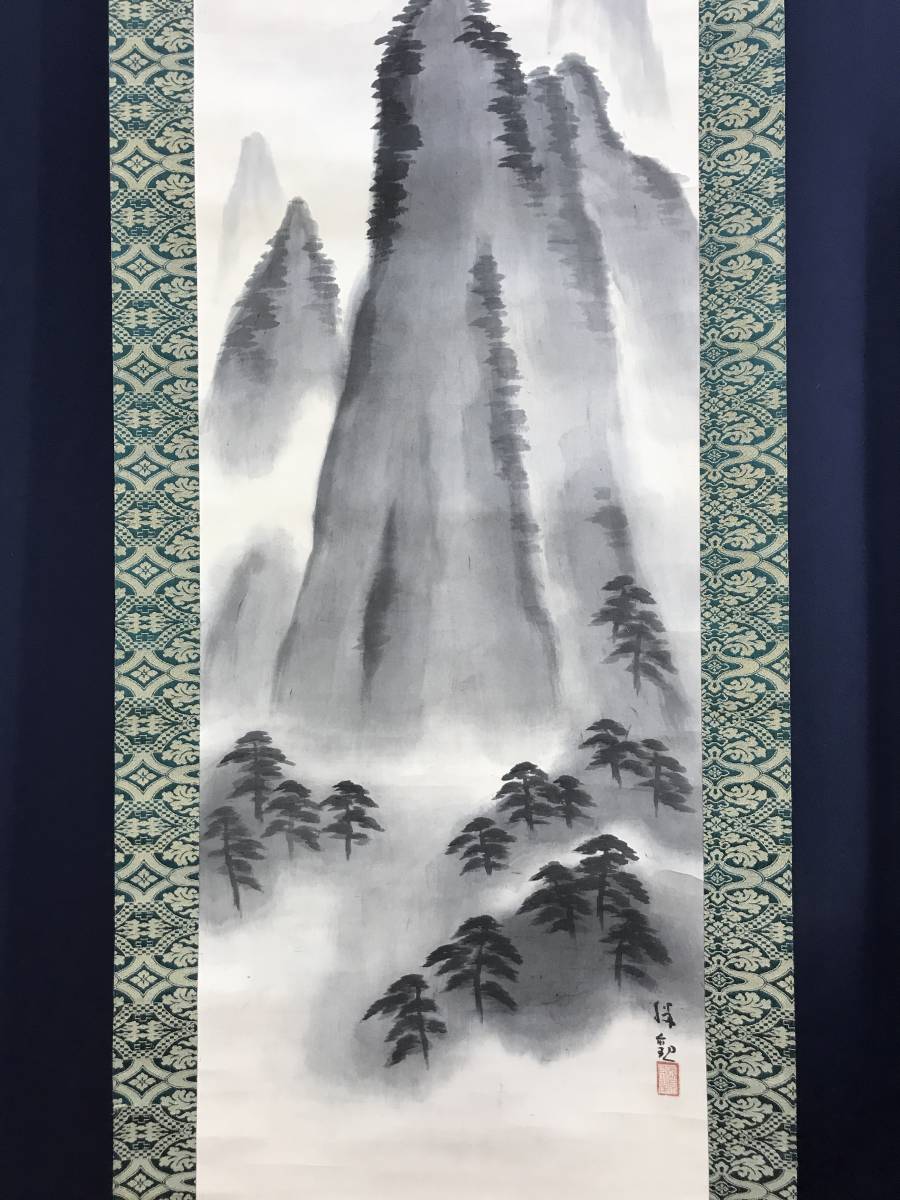 真作/大智勝観/蓬莱山図/山水図/祝事山水図//掛軸☆宝船☆AD-753