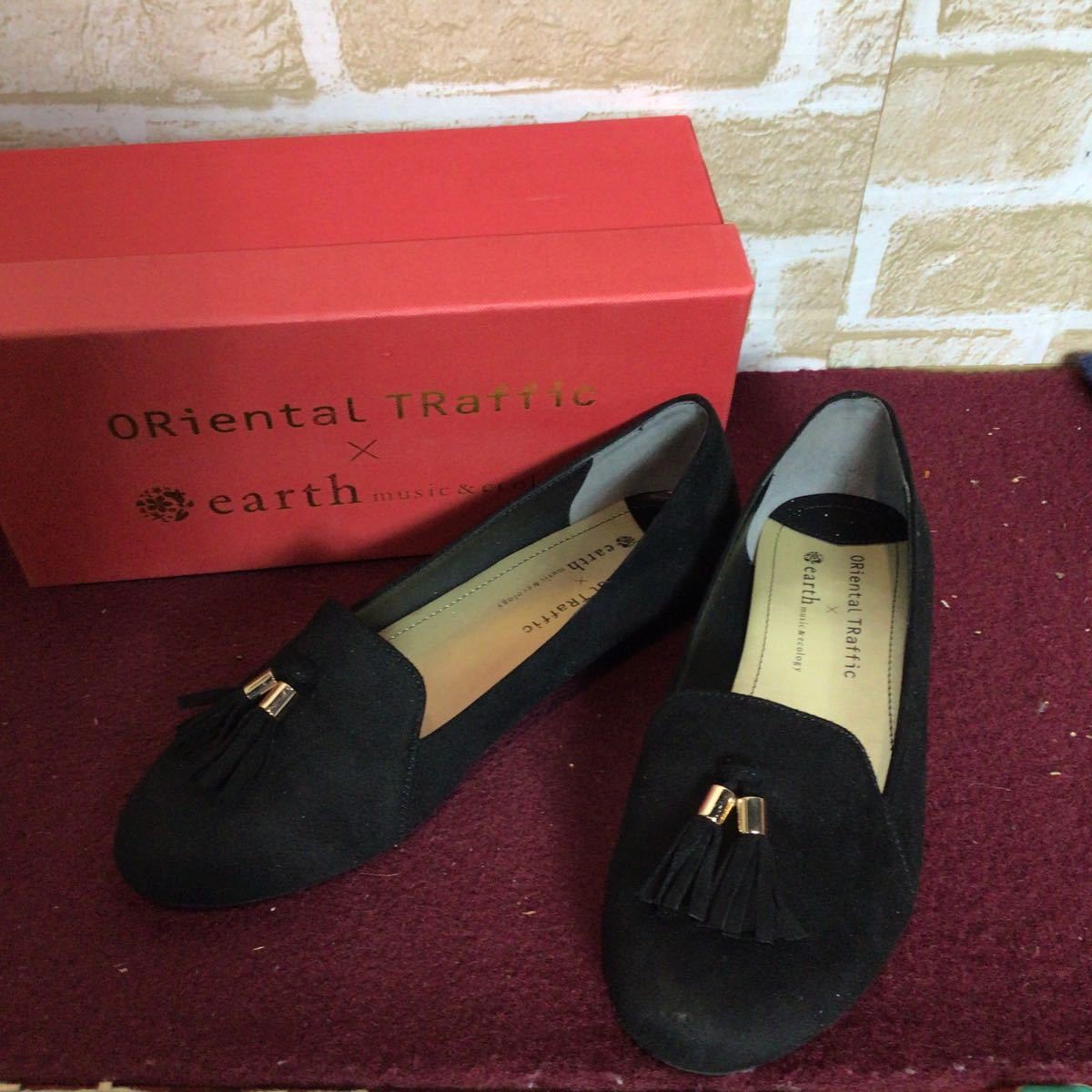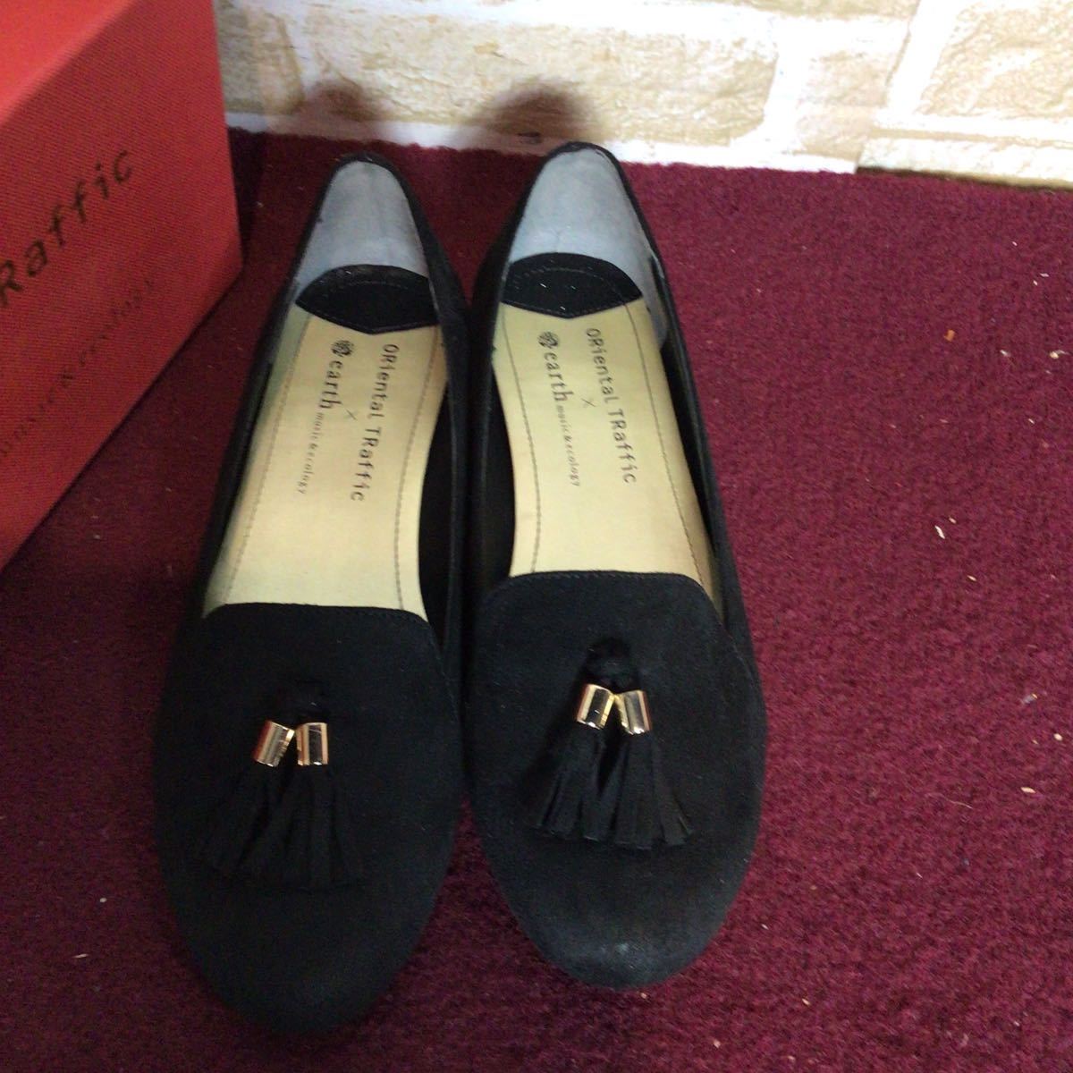 【売り切り!送料無料!】A-201 ORientaL TRaffil × earth music&ecology!タッセルオペラシューズ!黒!36 23.0cm位!おしゃれ!スエード!中古!