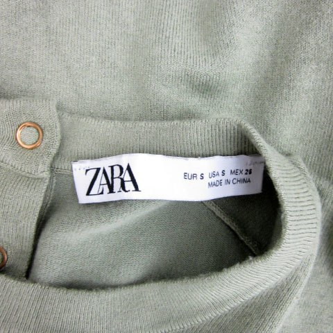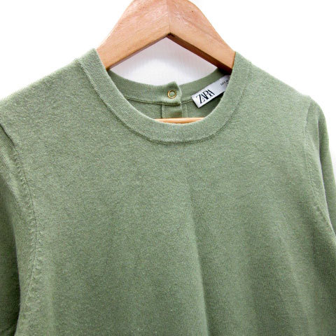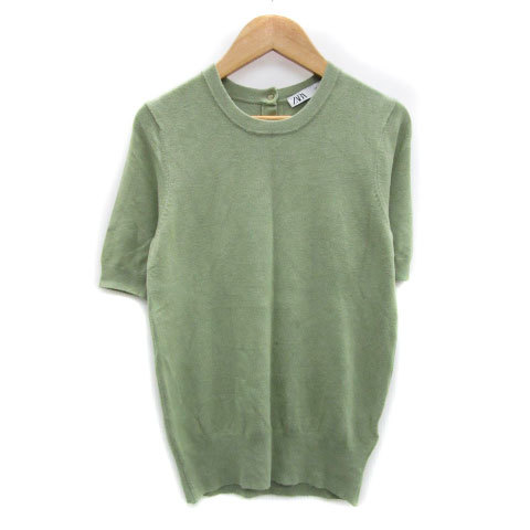 ザラ ZARA ニット カットソー 半袖 ラウンドネック S ライトグリーン 黄緑 /MS14 レディース