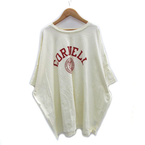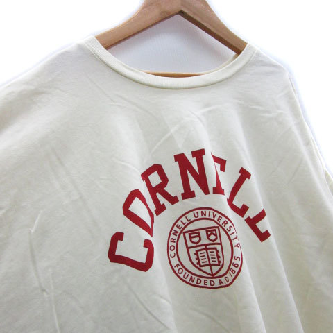 グッドスピード Cornell University カットソー Tシャツ 七分袖 ラウンドネック ロゴプリント オーバーサイズ F ライトベージュ レディース