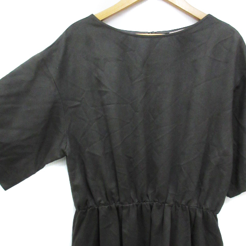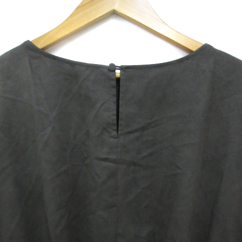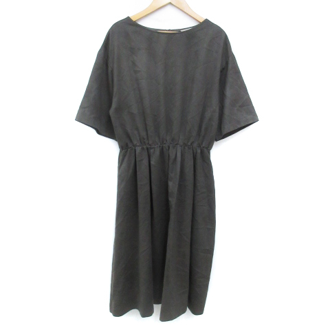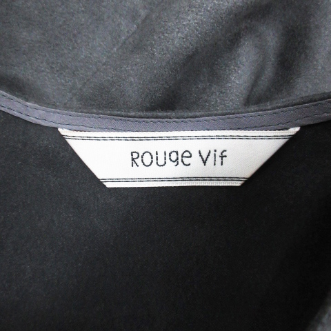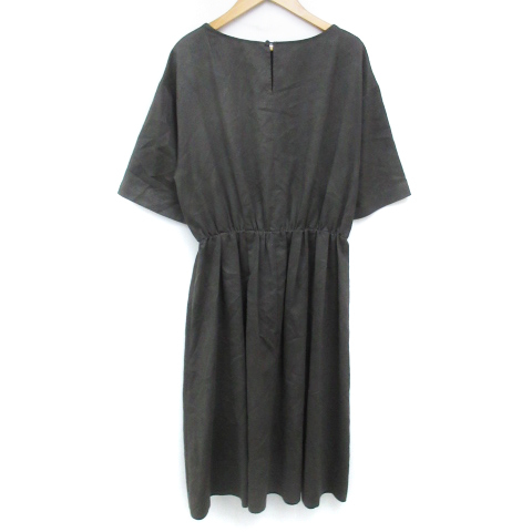 ルージュヴィフ Rouge vif フレアワンピース ミモレ丈 五分袖 ボートネック 切替 スエード調 無地 38 チャコールグレー /FF13 レディース