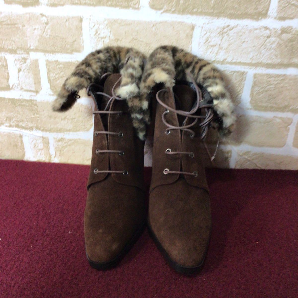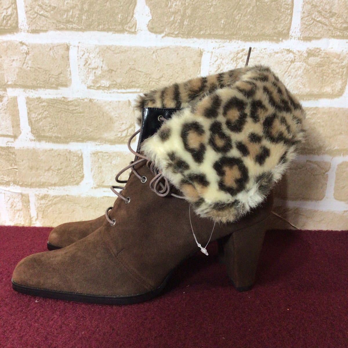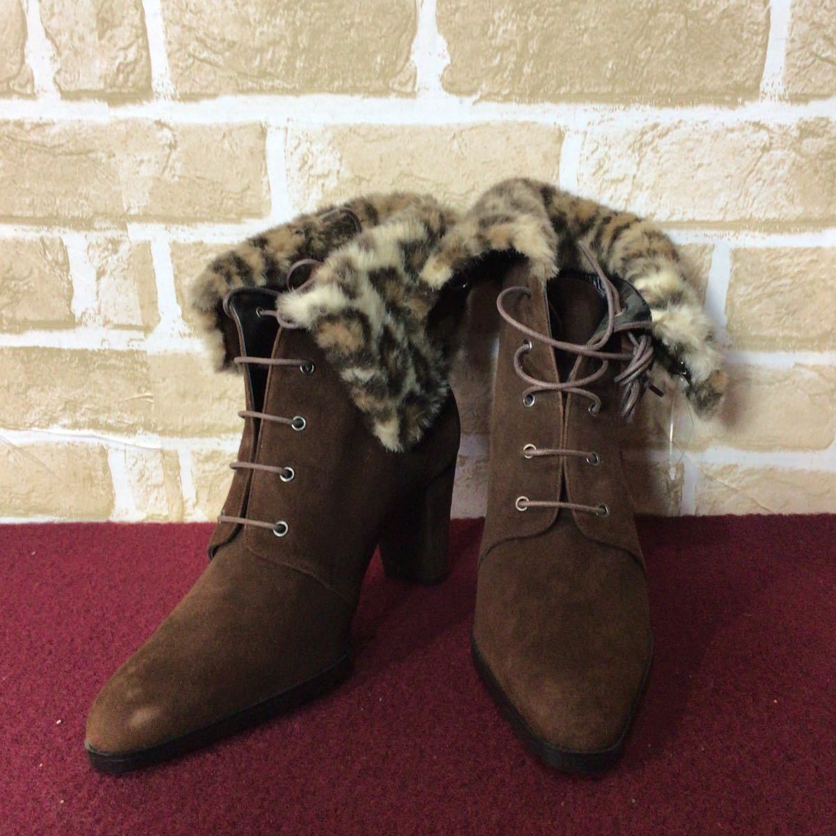 【売り切り!送料無料!】A-270 BOUTIQUE OSAKI!ショートブーツ!スエード!ブラウン!日本製!茶色!24cm!おしゃれ!ヒョウ柄ファー!未使用