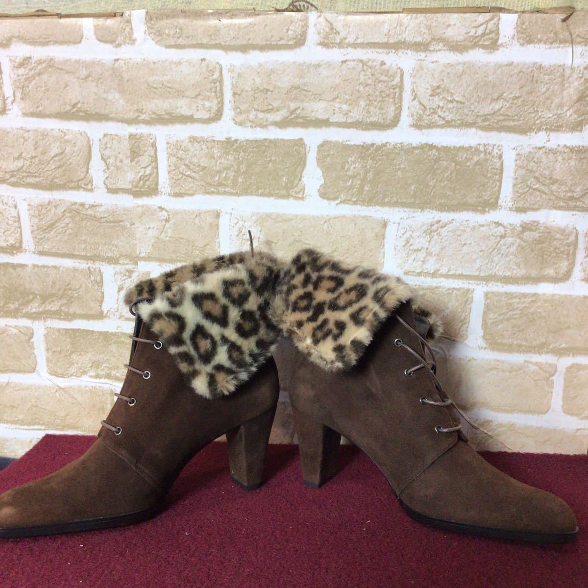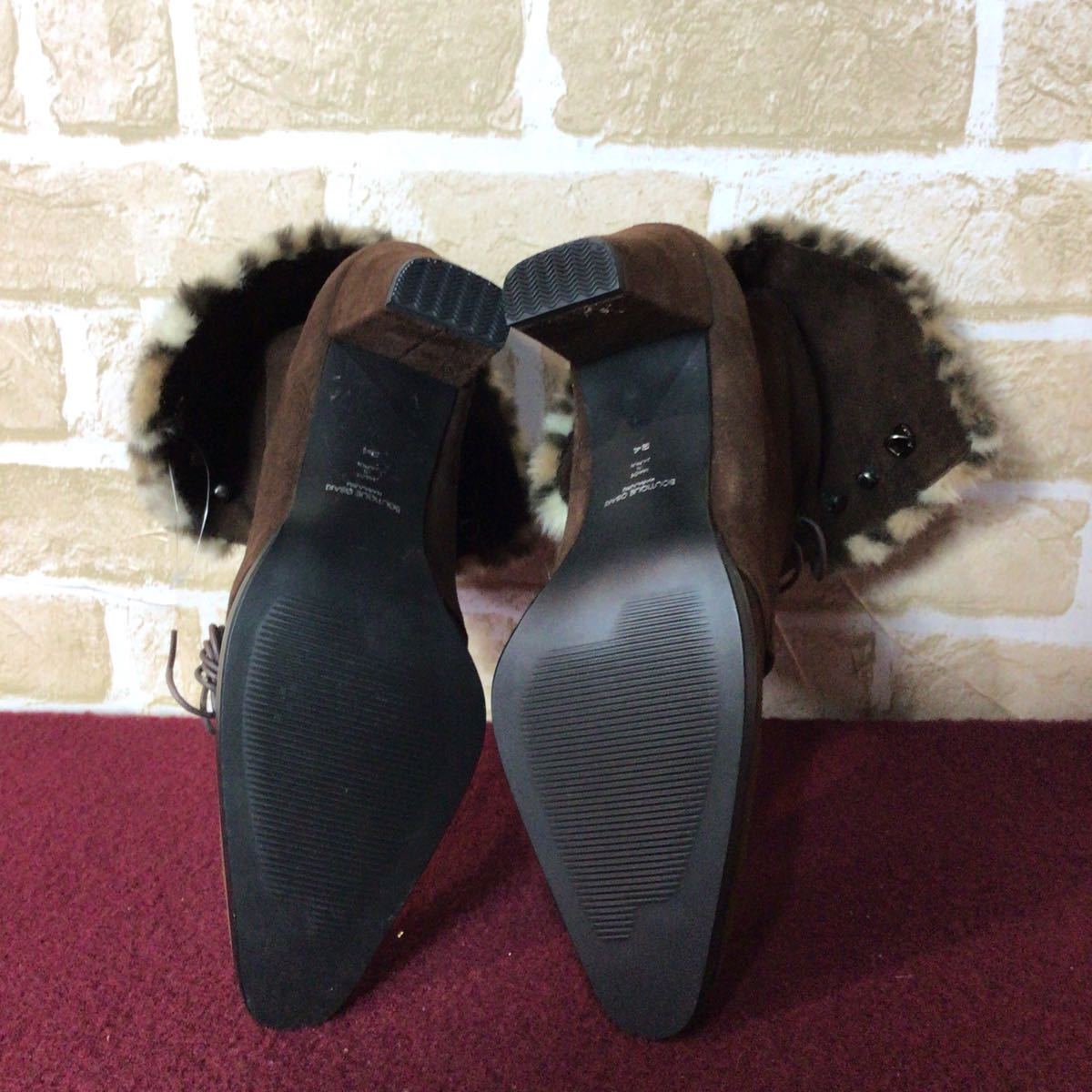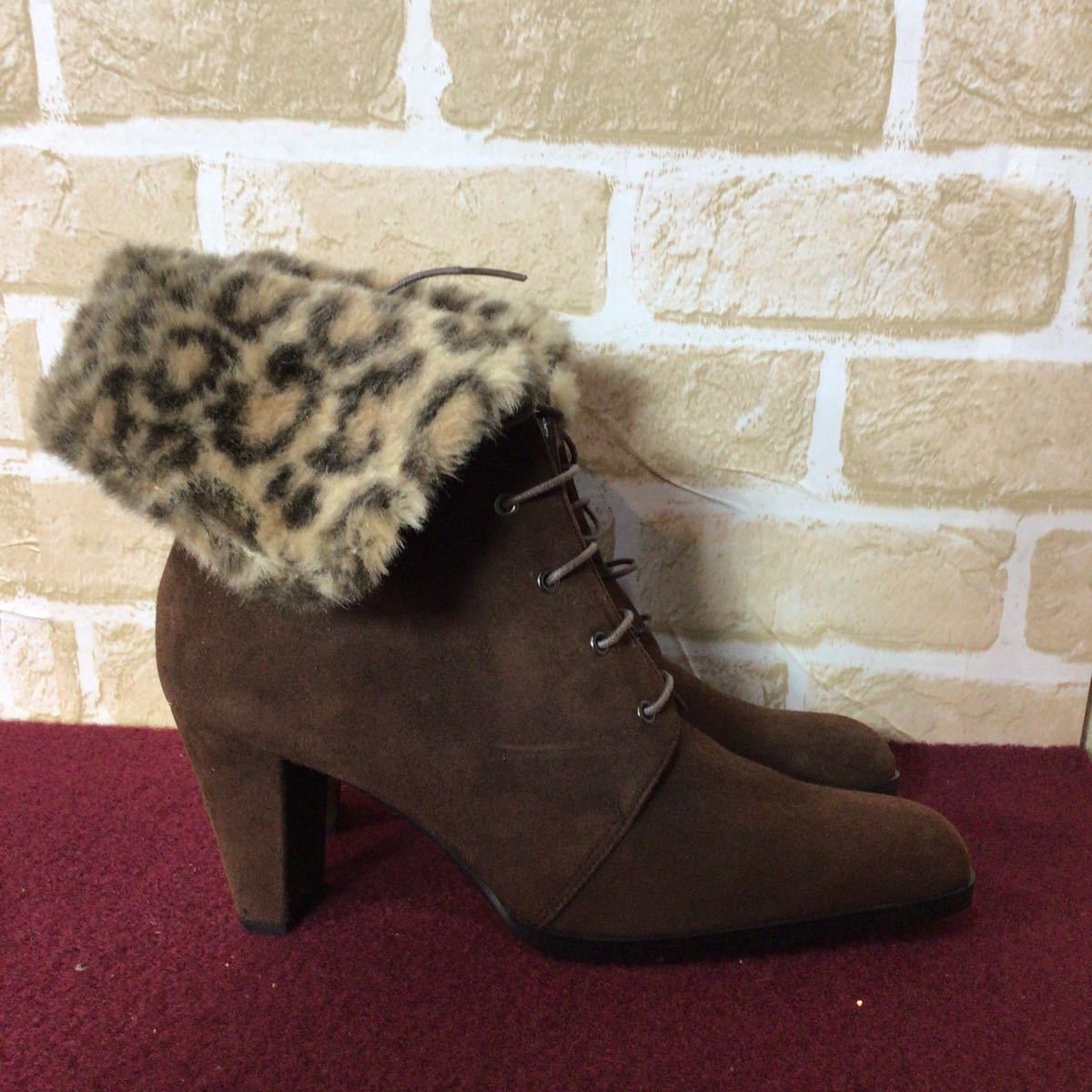 【売り切り!送料無料!】A-270 BOUTIQUE OSAKI!ショートブーツ!スエード!ブラウン!日本製!茶色!24cm!おしゃれ!ヒョウ柄ファー!未使用