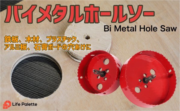 | 2点 バイメタルホールソー 直径100mm 125mm 木工 穴開け 工具ドリルビット 鉄工キリ 電動ドリル 配管 まとめ買い セット ライフパレット セット 超硬ホルソー 木工穴開け 工具ドリルビット 鉄工キリ 刃 電動ドリル 穴あけ 100mm 125mm DJ562 新品 送料 全国一律1000円 バイメタルホールソー アルミ板、鉄板、木材、プラスチック、石膏ボードなどの穴あけに 使用頻度の高い大きいサイズを厳選! お得なバイメタルホールソー2点セットです。 アルミ板、鉄板、木材、プラスチック、石膏ボードなどの穴あけにお使いいただけます。 センタードリル、スプリング付きで掘削などにも適しています。 薄刃設計により切削抵抗が少なく、速い穴あけが可能です。 支払詳細 セット内容【バイメタルホールソー 2本】 ヘッド直径100、125mmmm 2本セット 100mm 125mm 材質:HSS センタードリル スプリング付き 軸形:写真参照 (3本爪チャック式用 6.35ミリ六角軸には使用不可) 適用機器:回転専用ドリル、ボール盤 電動ドリル等 (チャック10mm~13mm汎用型) 適用材質:アルミ板(3mm以下)、鉄板(3mm以下)、木材、プラスチック、石膏ボード等 【使用動画】 その他ホールソーセットはこちらから♪ 【使用上の注意】 部材に対し垂直に使用してください。途中からドリルを傾けたりしないで下さい。 作業時はゴーグルやマスク等の保護具を装着してください。 作業時はホールソー本体が熱を持っており、火傷の恐れがありますので素手で触らないようにしてください。 | |||