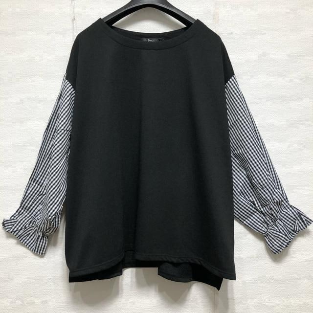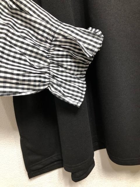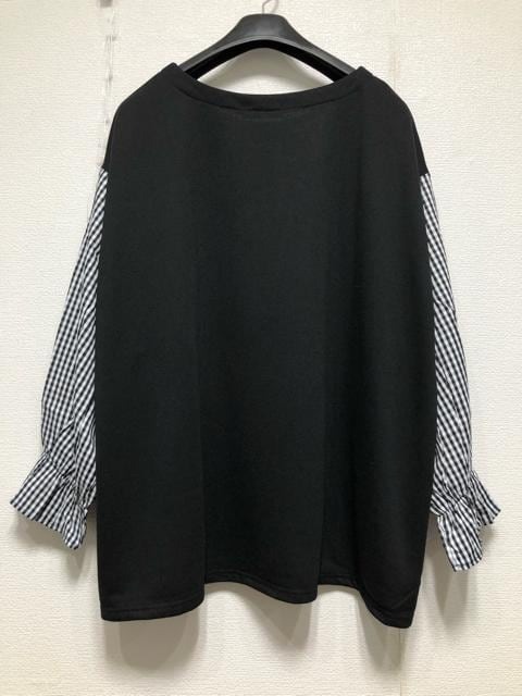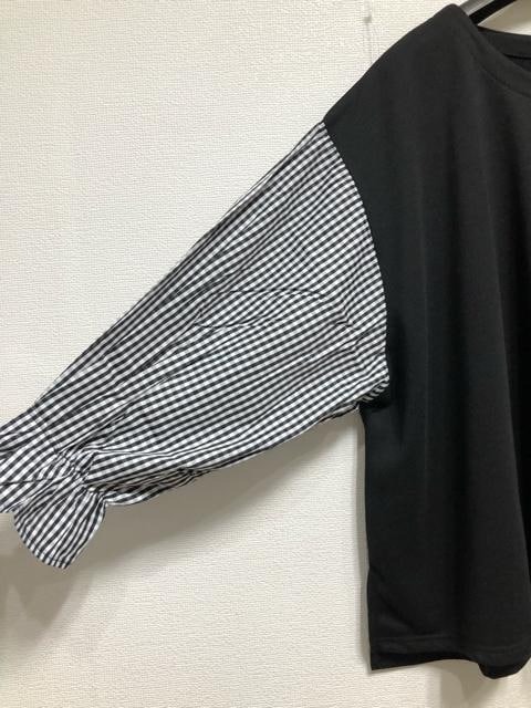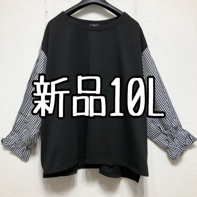 新品☆10L♪黒系チェック♪異素材ドッキング♪かわいいトップス♪☆u614