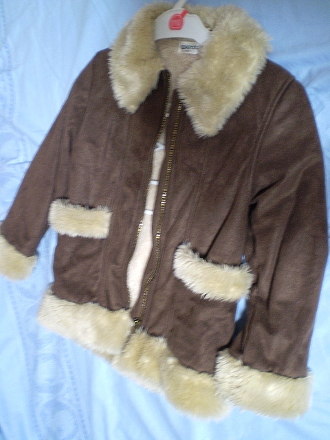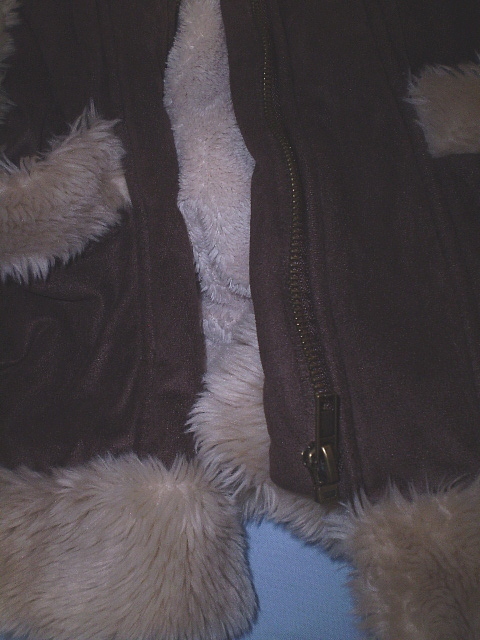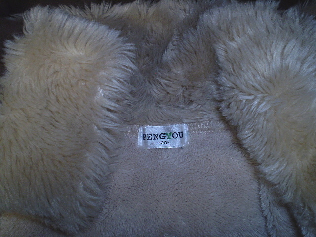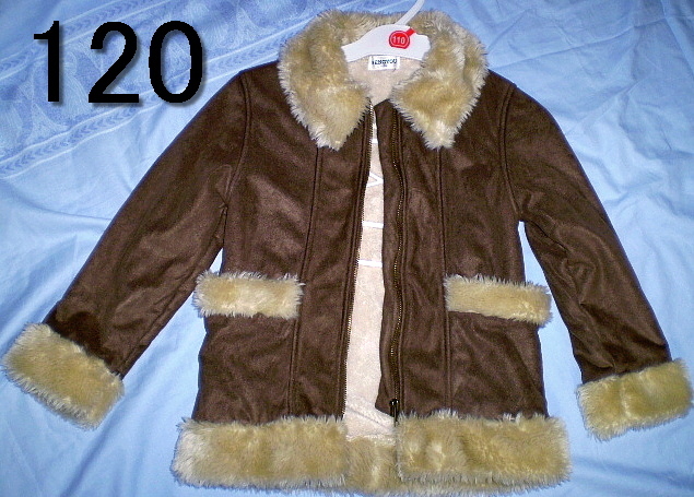 大きめ 120 PENGYOU ( アウター ボア ) レザー スウェード風 ブラウン 茶系 ジャンパー コート ジャケット 丸洗い済 子供 定形外可