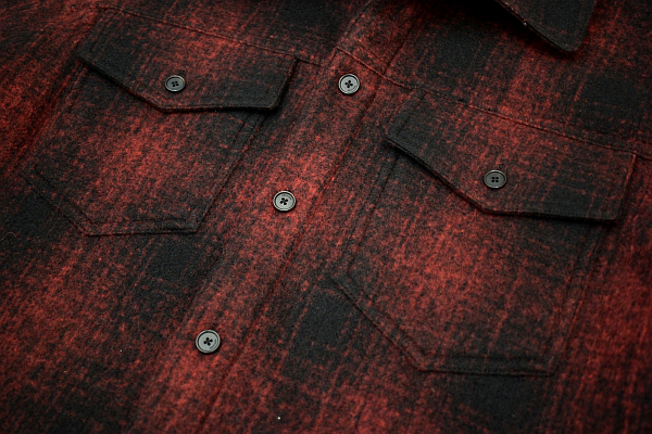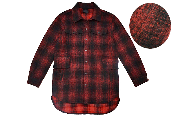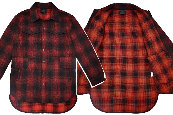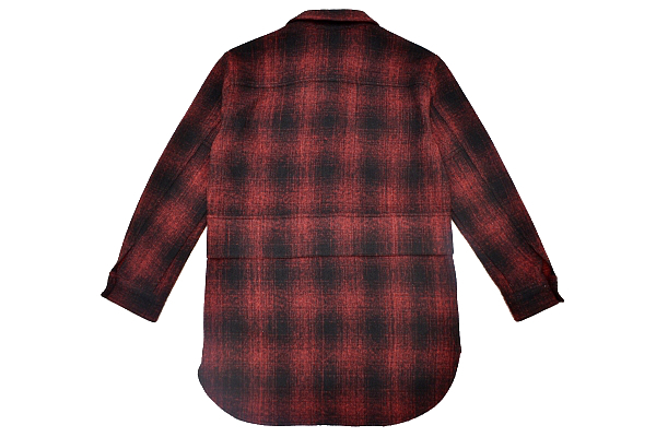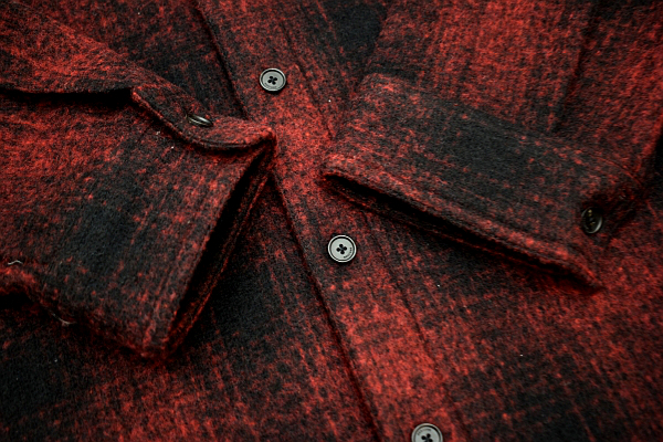 レッド×ブラック オンブレチェック 外ポケット四個 内ポケット1個 メルトンウール(圧縮ウール) シャツジャケット
