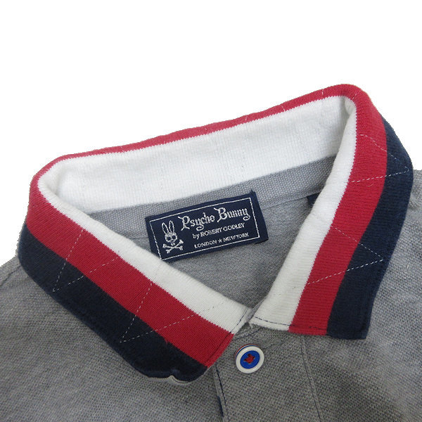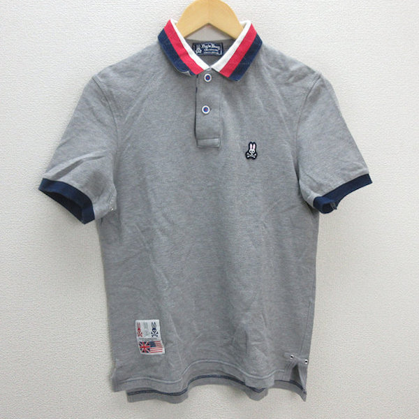 y■サイコバニー/PSYCHO BUNNY ワッペン付き 半袖ポロシャツ/鹿の子■灰【メンズM】MENS/108【中古】