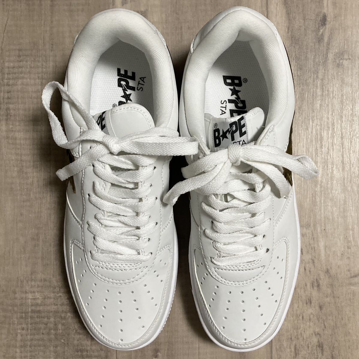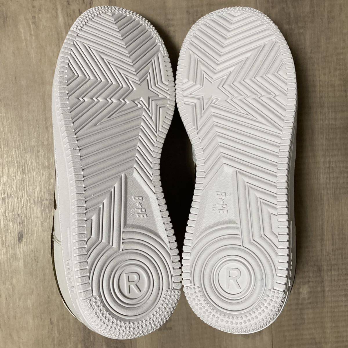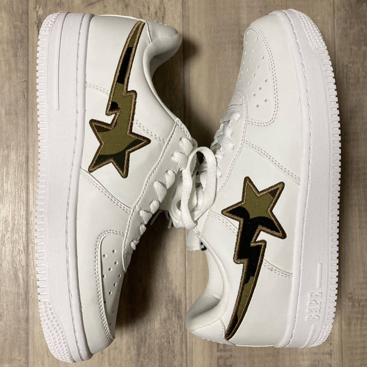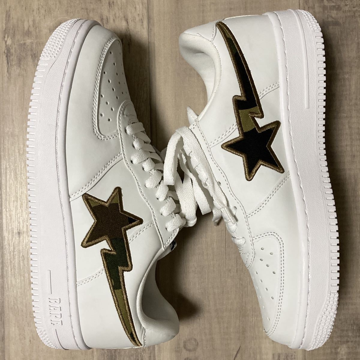 a bathing ape レザー BAPESTA スニーカー ホワイト × 1st camo green 27.5cm(US9.5) です★