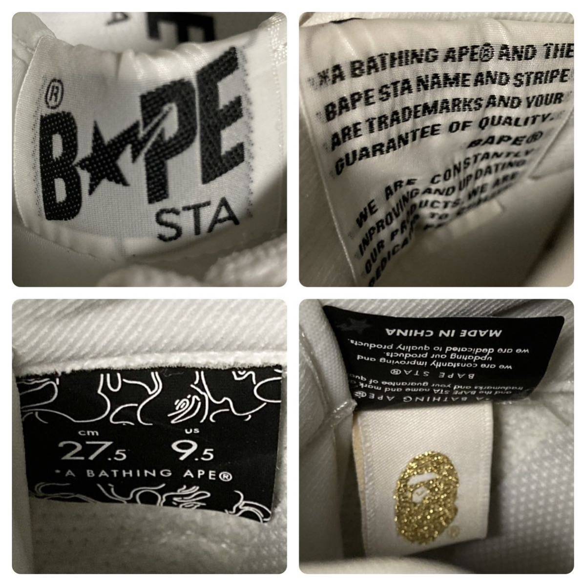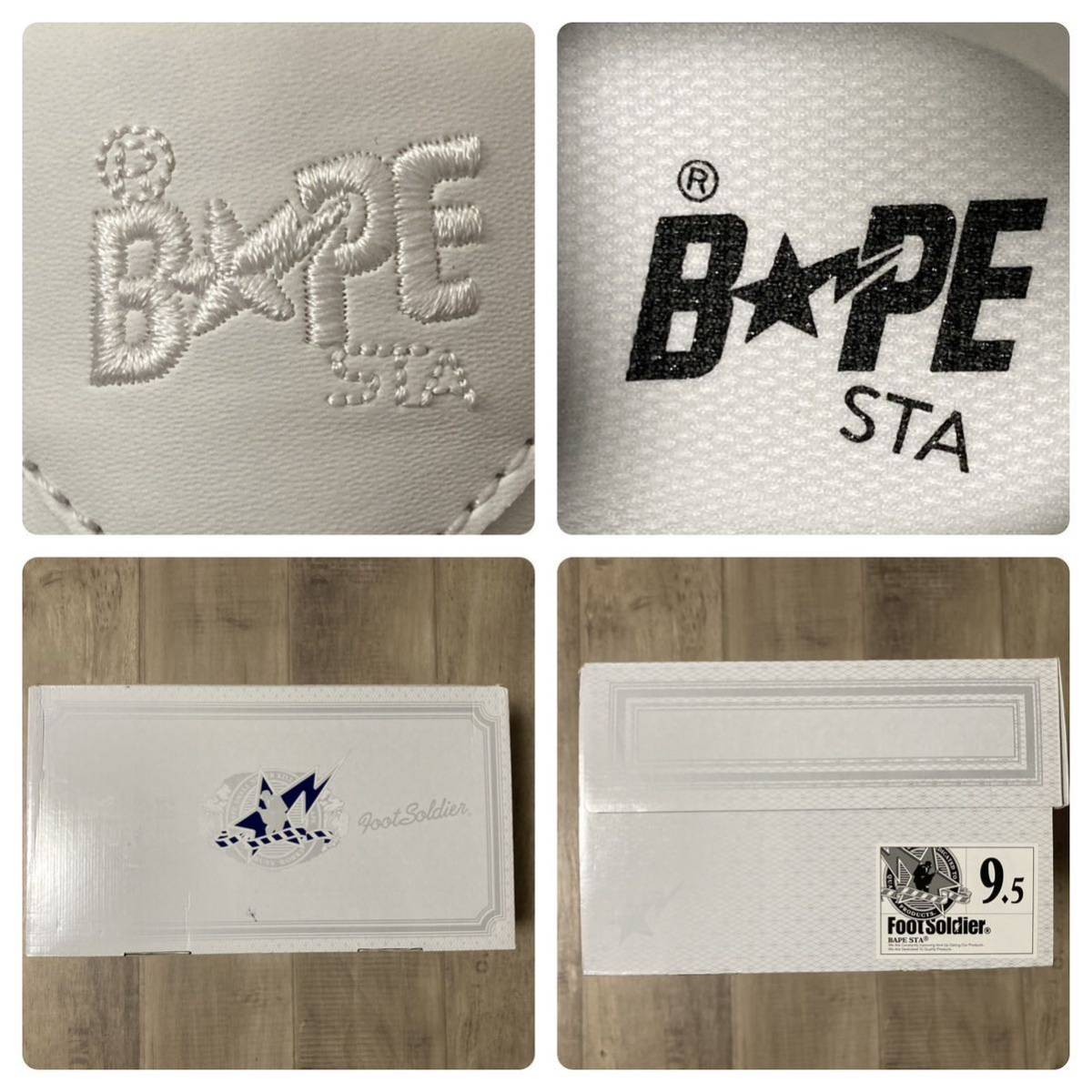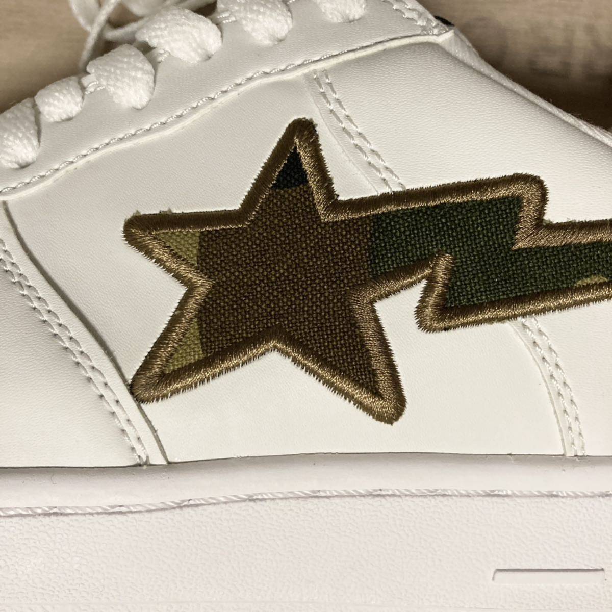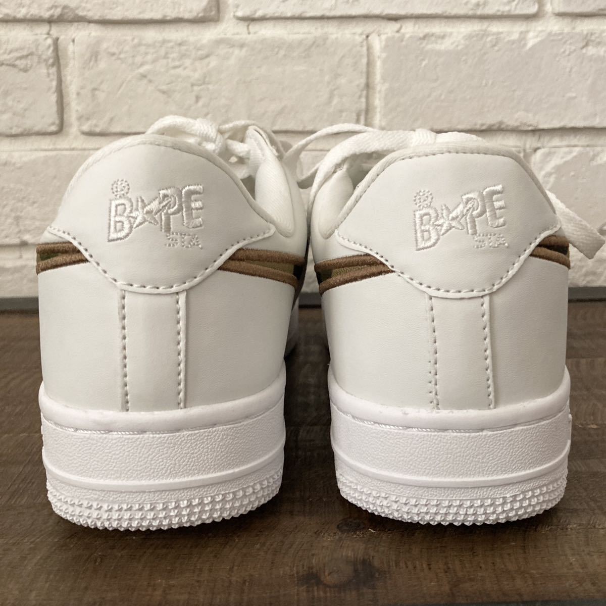 a bathing ape レザー BAPESTA スニーカー ホワイト × 1st camo green 27.5cm(US9.5) です★
