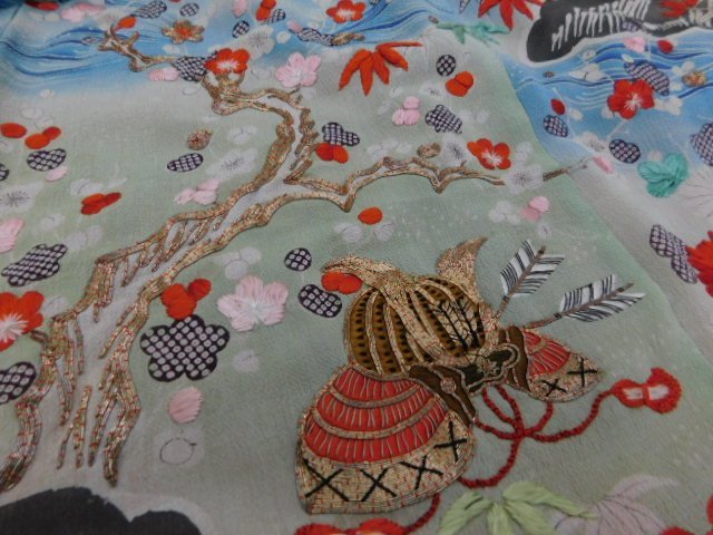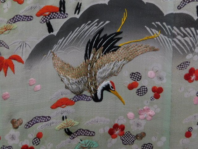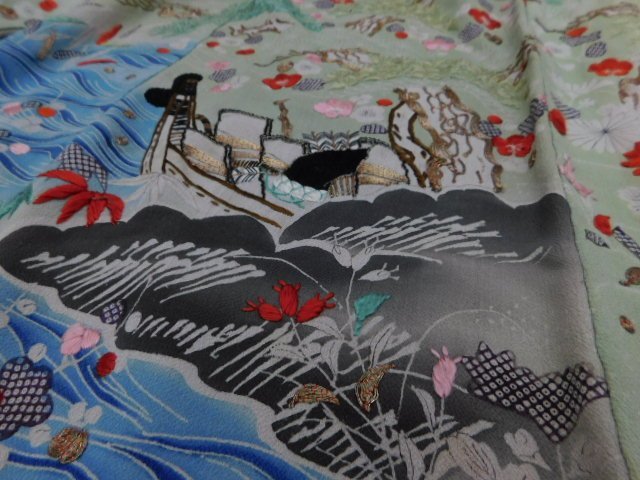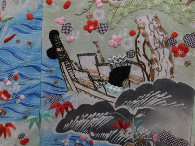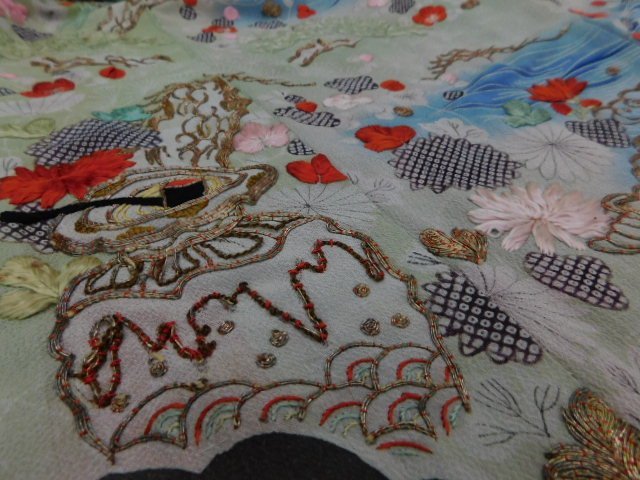 見事な幕末の縮緬振袖で、見事な染めと刺繍です。