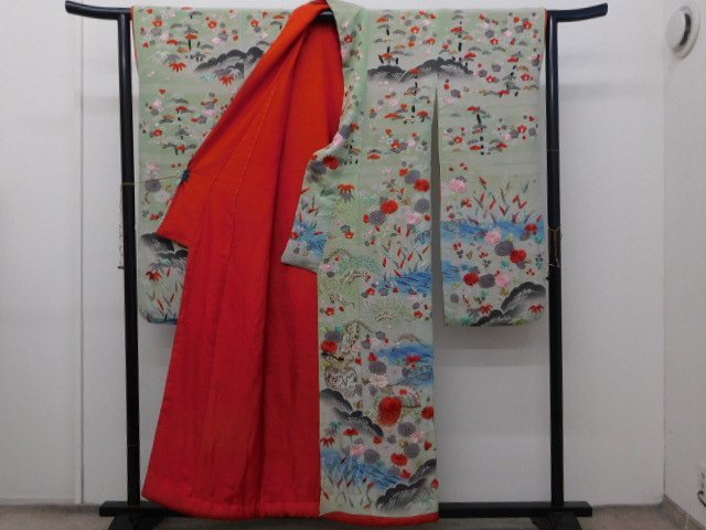 〔楽布特選〕P26498 時代衣装 振袖袷 花嫁衣装 縮緬 江戸時代 オークション k