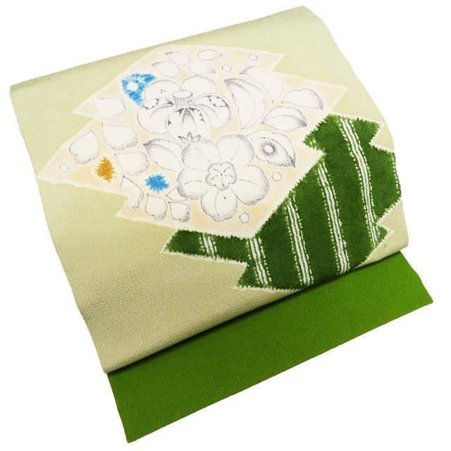 サイズ 357cm x 30.5cm 素材 正絹 商品ランク C ●お色 若芽色 多色 所々薄シミがございますが、まだまだご着用いただけるお品物です。 一部商品は実店舗・他サイトでも並行して販売しておりますので売り切れの際はご了承ください。 その他多数販売中 ku- | ||||||