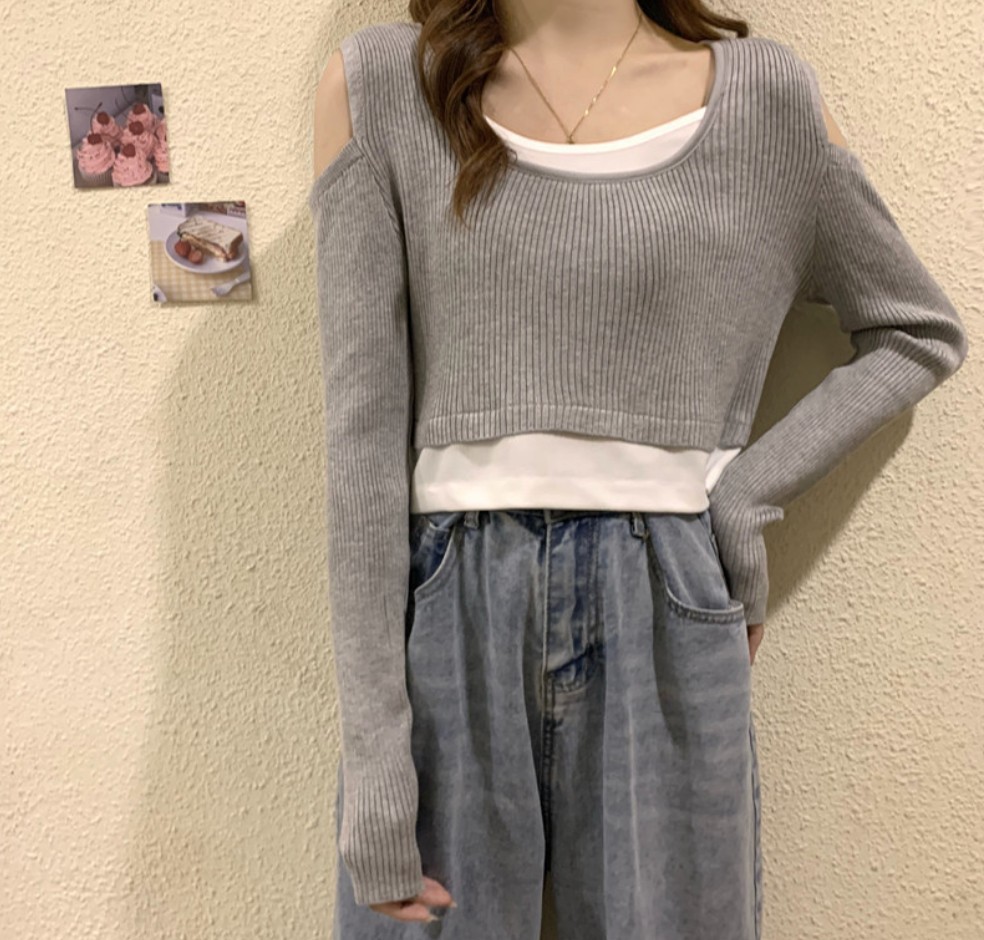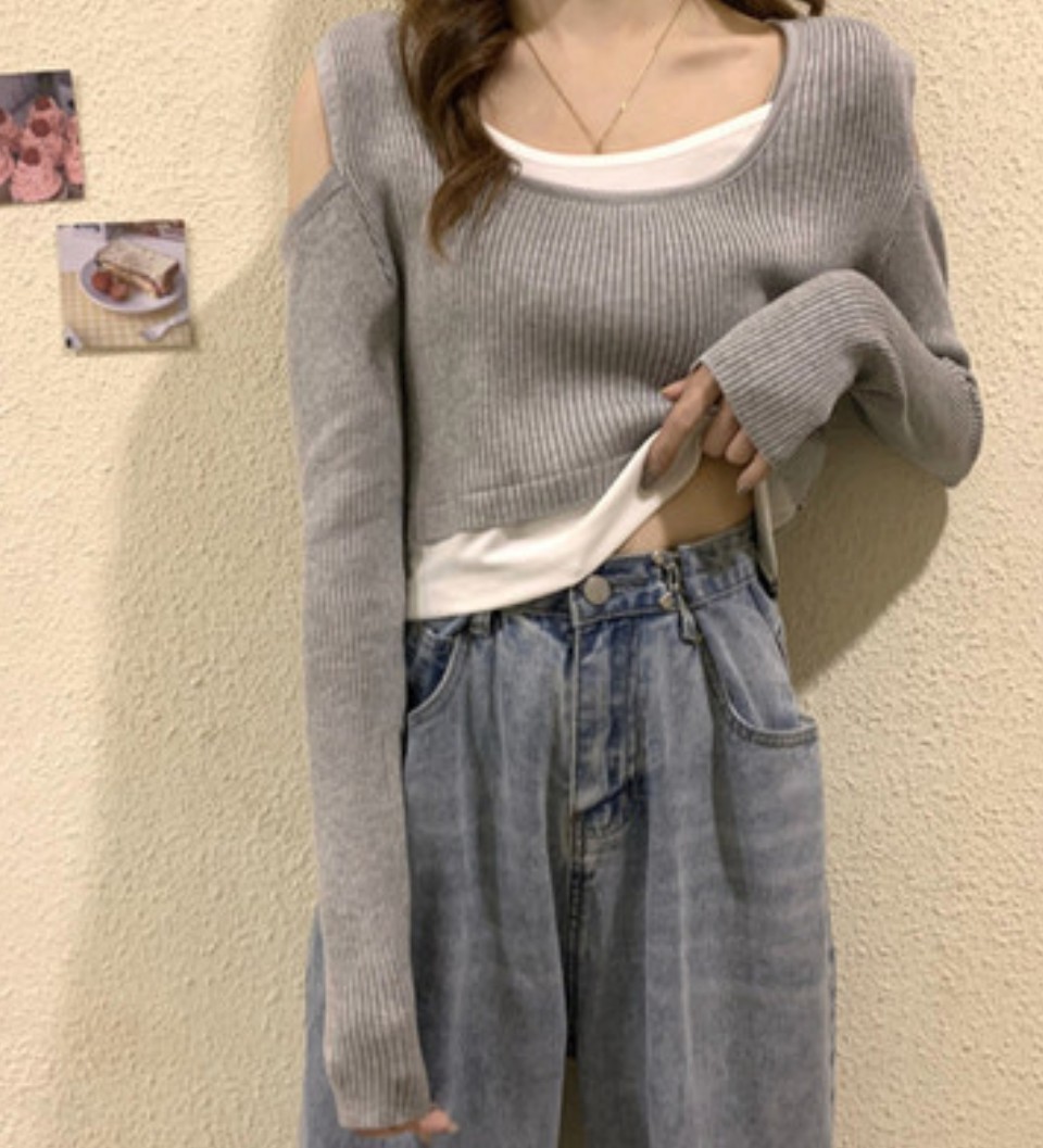 重ね着風で可愛らしいオフショルダータイプの長袖カットソーです。