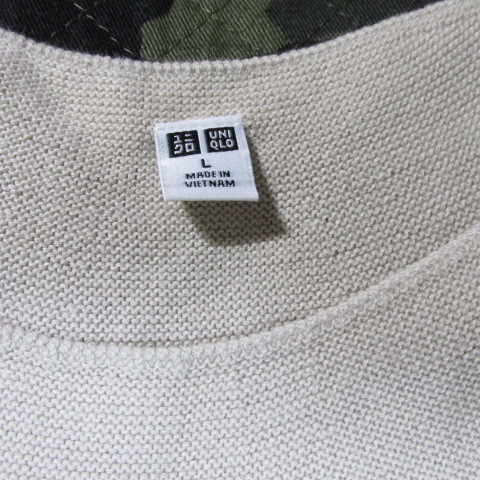 ユニクロ やや薄手 長袖トップス ベージュ系 Lサイズ