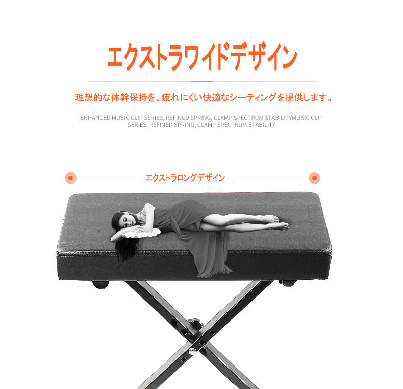 【座り心地も抜群】椅子の座面はソフト合皮を採用しており、約7cmの分厚い座面を採用、ウレタンクッション製座り心地も良く長時間の演奏にもオススメです。