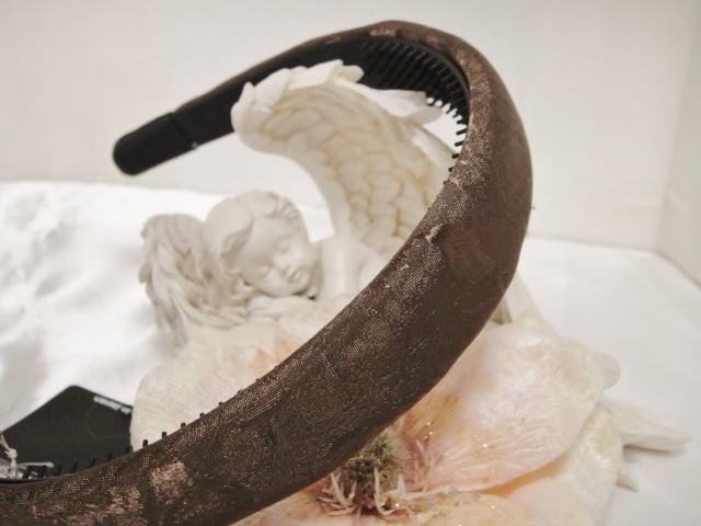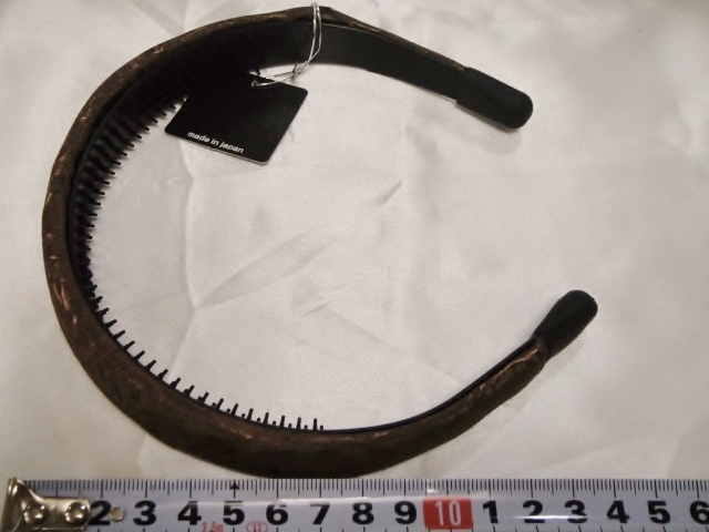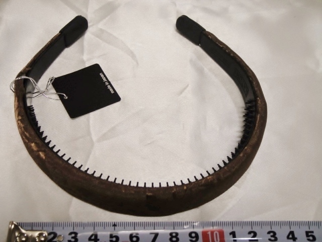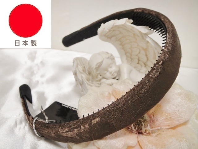 ♪ 新品 カチューシャ 日本製『高品質/幅広/甲丸/シルクシャンタン/ローズプリント柄/薔薇/花/頭が痛くならない/パールブラウン/茶』♪