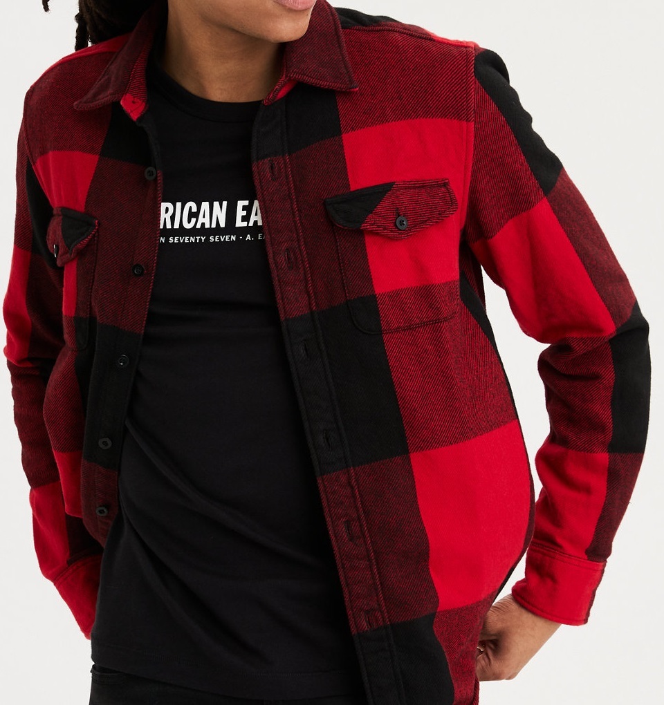 セール!!ラスト2!◇◆AE/アメリカンイーグル / AEシリアスリーフランネルシャツ / Red / US L /