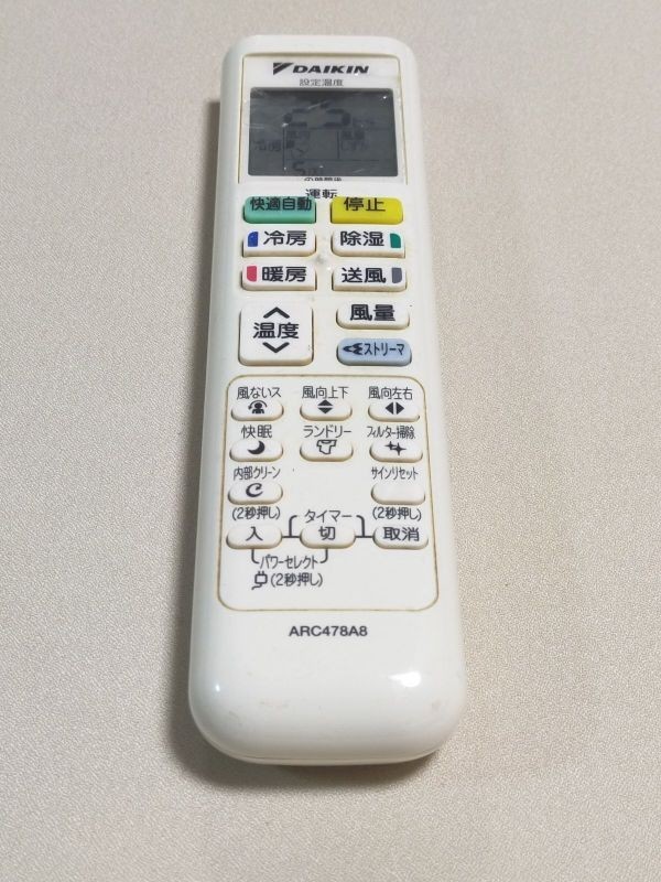 | kk1245 除菌・清掃済 DAIKIN/ダイキン エアコン用 リモコン ARC478A8 赤外線発光確認済 返金保証あり | |