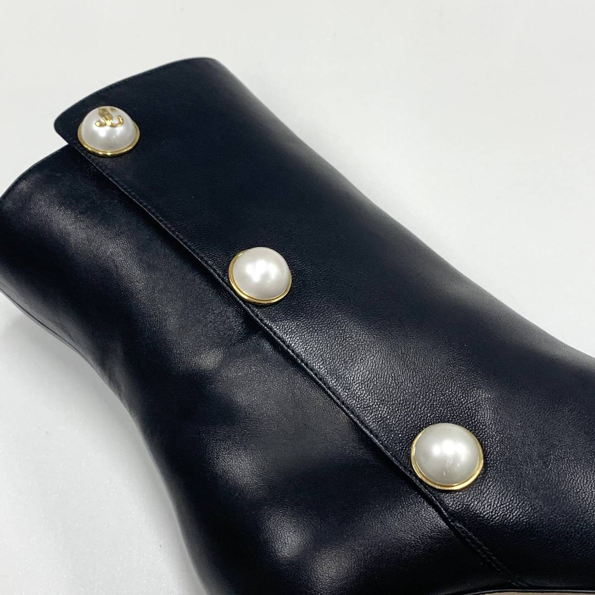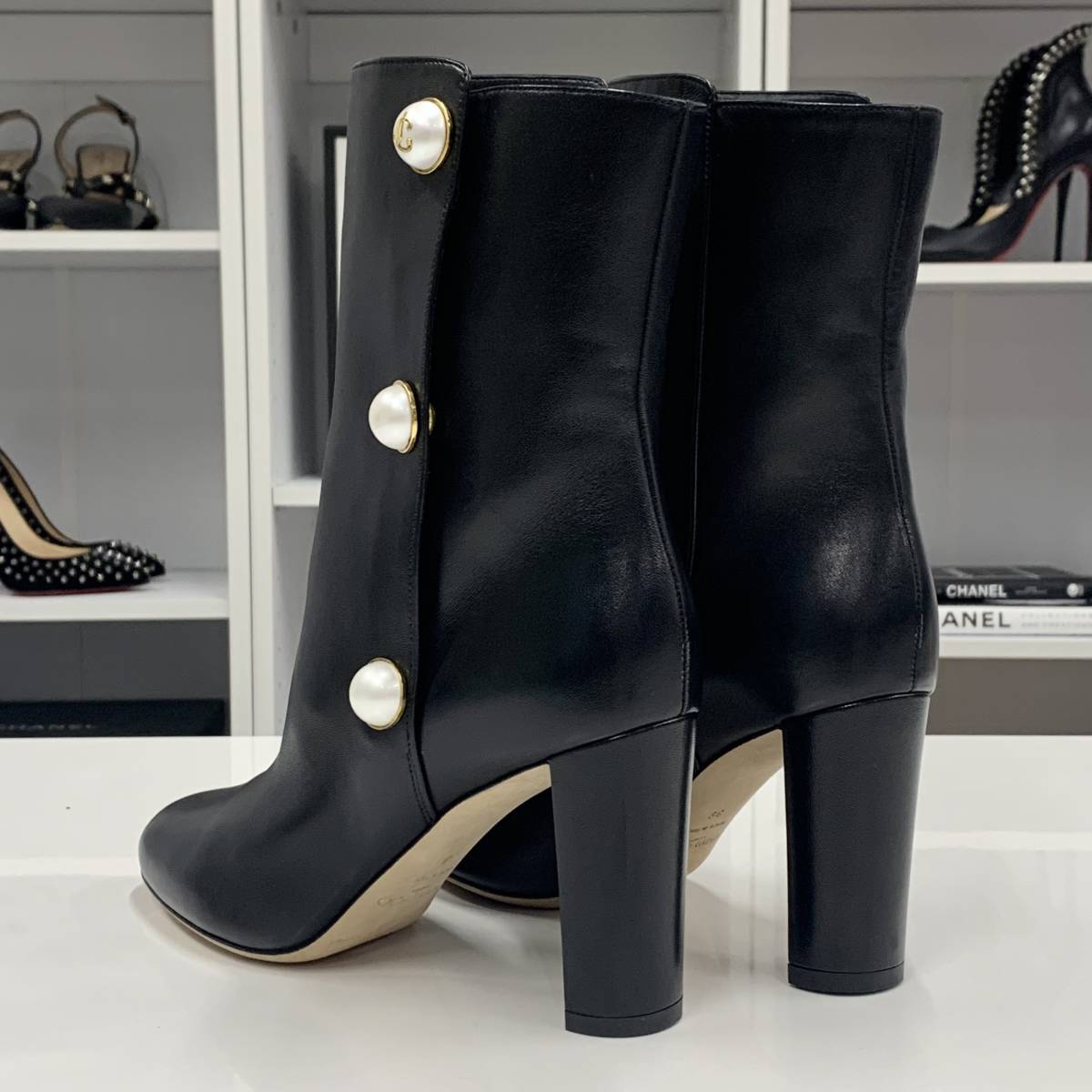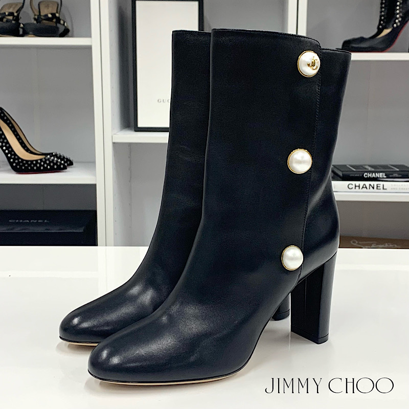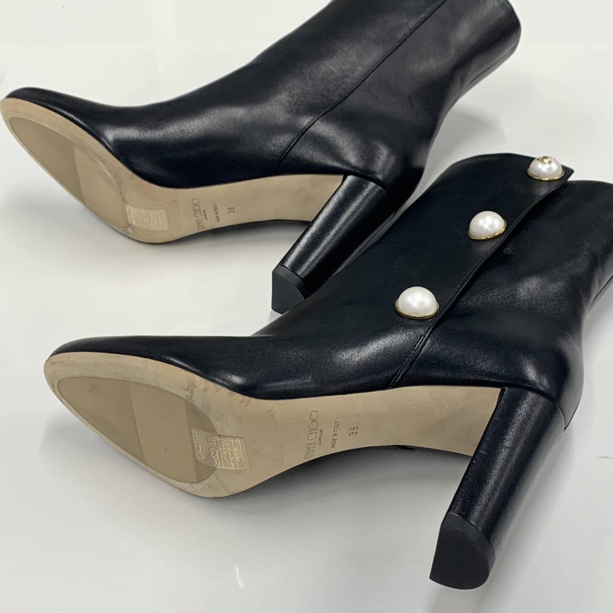 ジミーチュウ レザー パール ショートブーツ ブラック