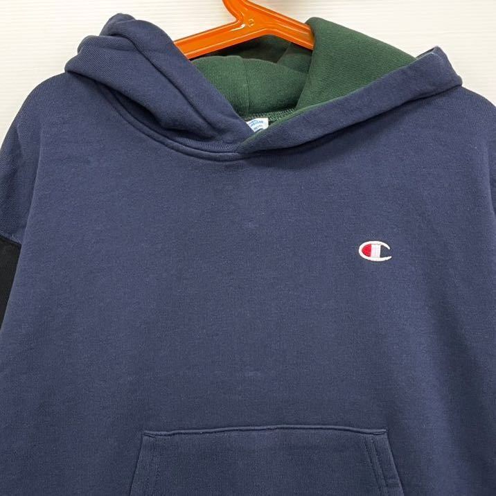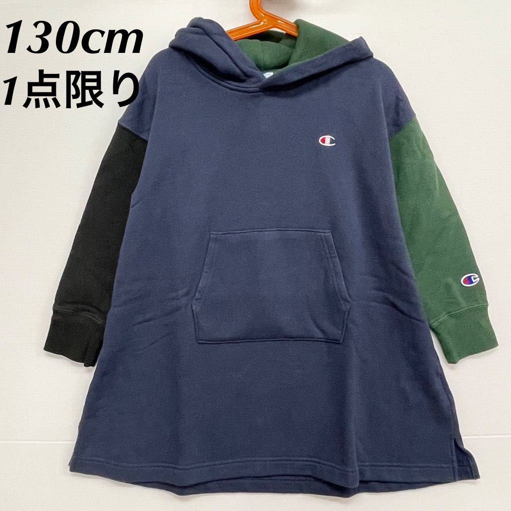 新品19294 130cm Championチャンピオン 紺ネイビー袖切替 ガールズ フーデットスエットワンピース 長袖チュニックワンピース女子キッズ