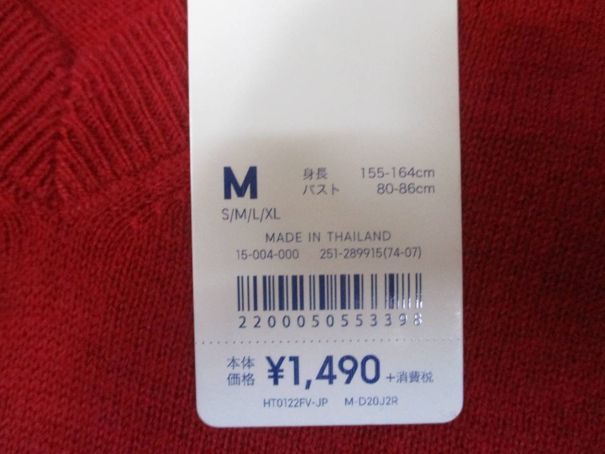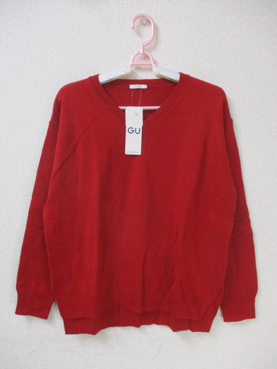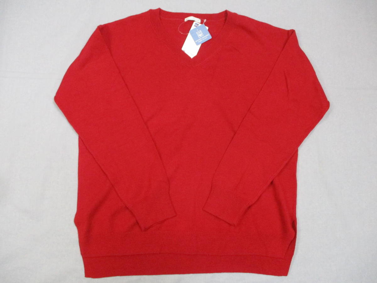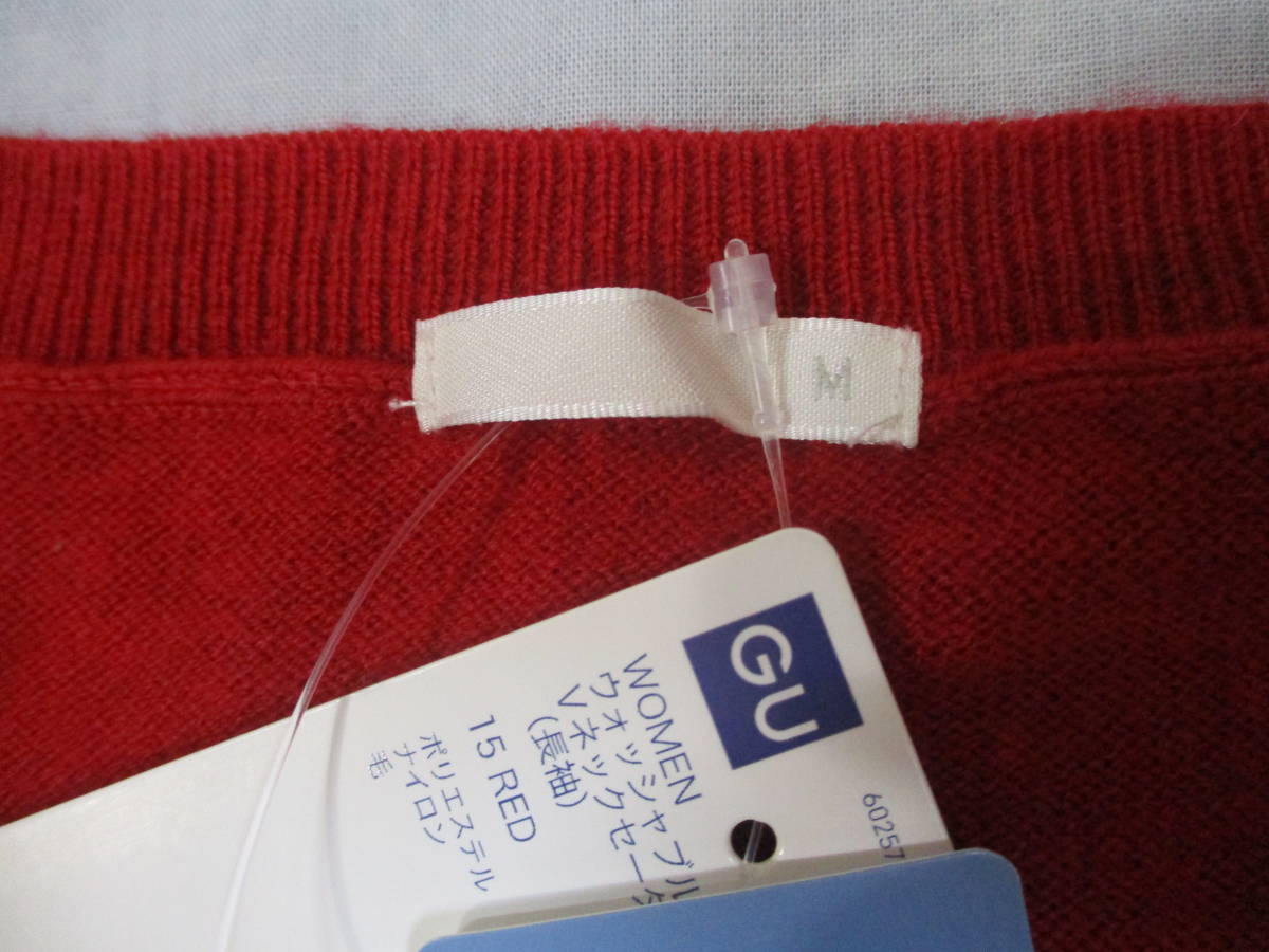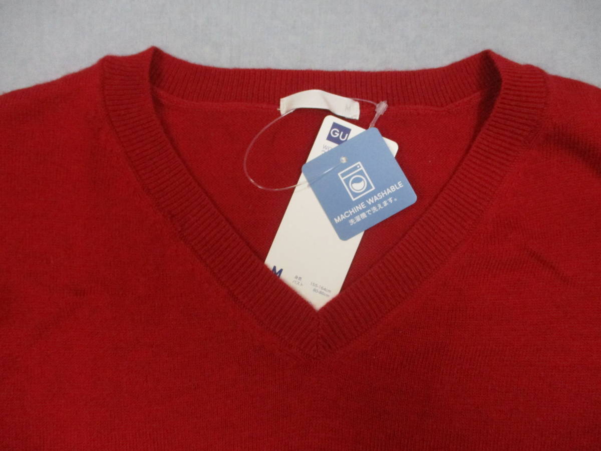 GU WOMEN ウォッシャブルVネックセーター(長袖) RED Mサイズ (株)ジーユー