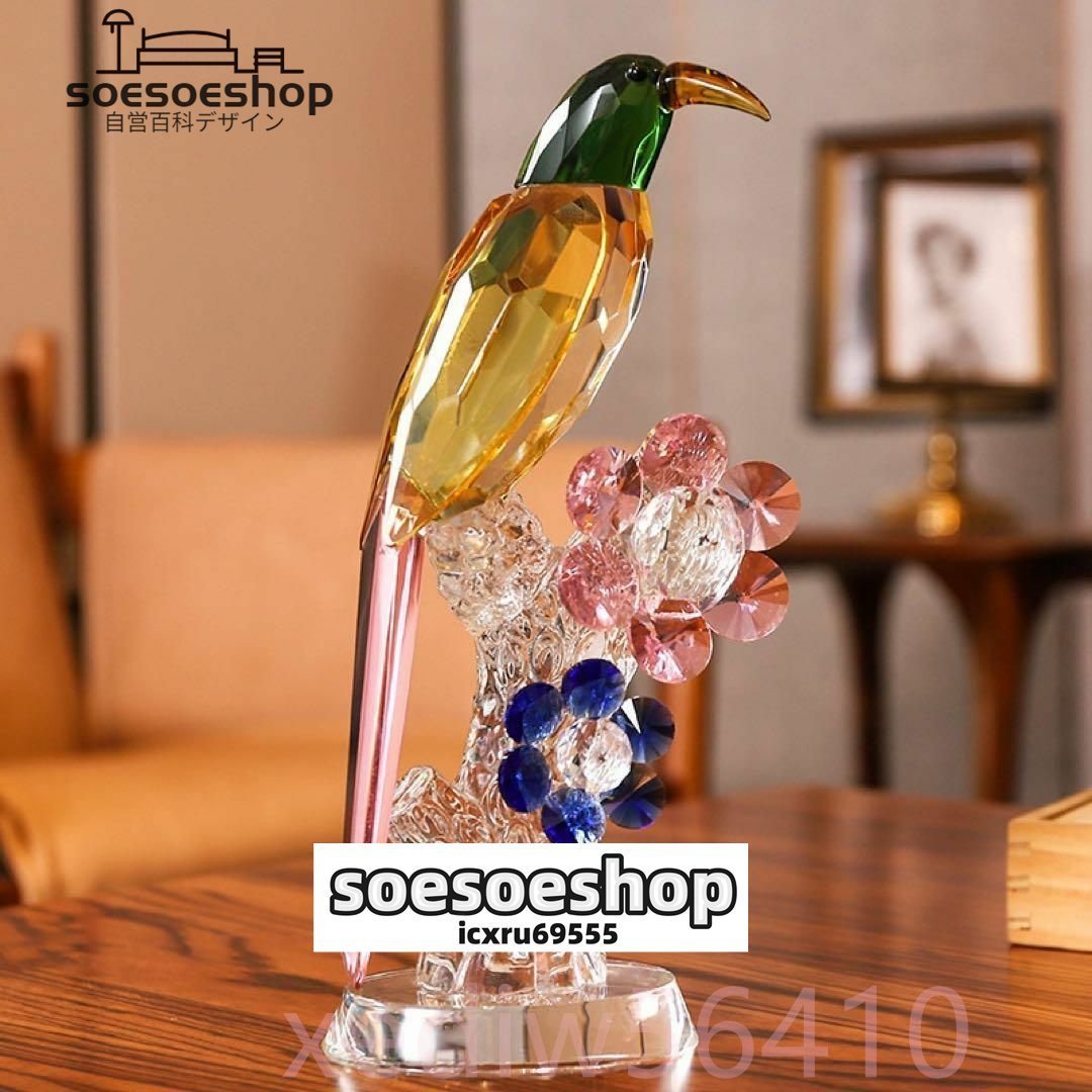 高級 彫刻クリスタルバード クリスタル素材 サンキャッチャー 置物 オブジェ 輸入雑貨 インポート インテリア ガラス 贈り物 キラキラ