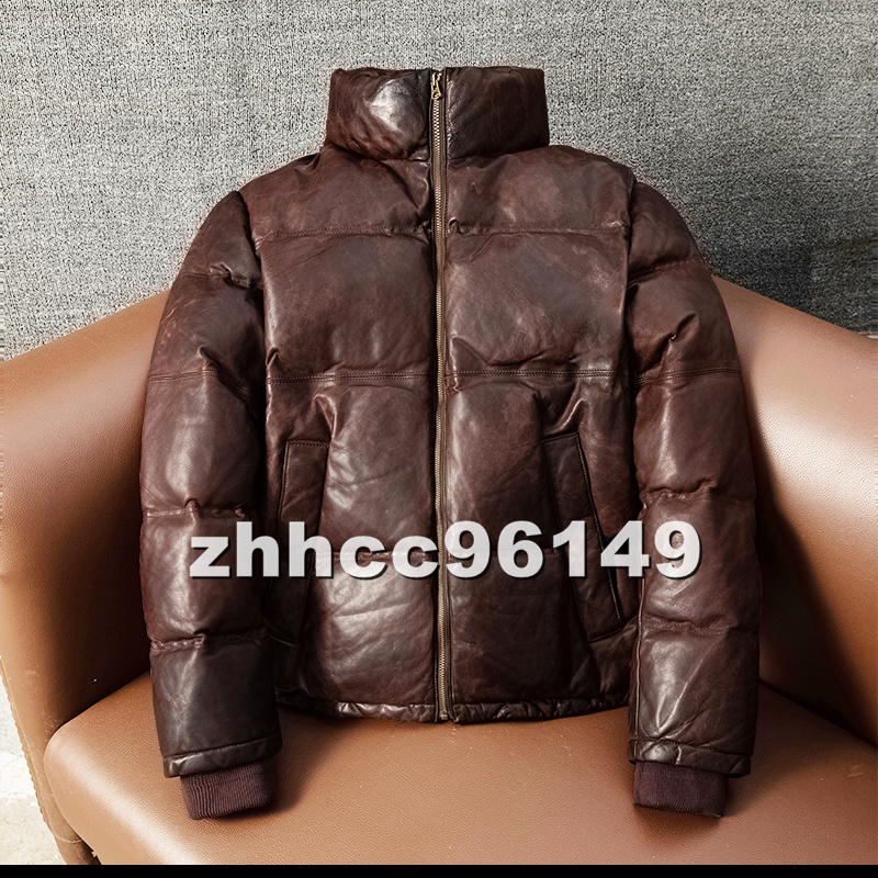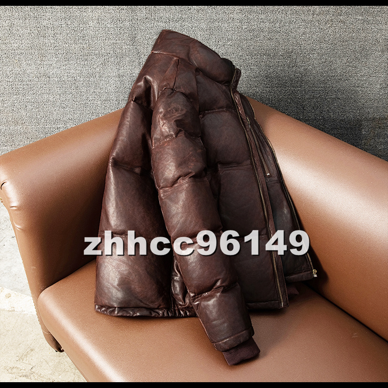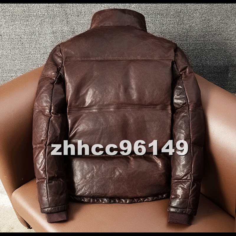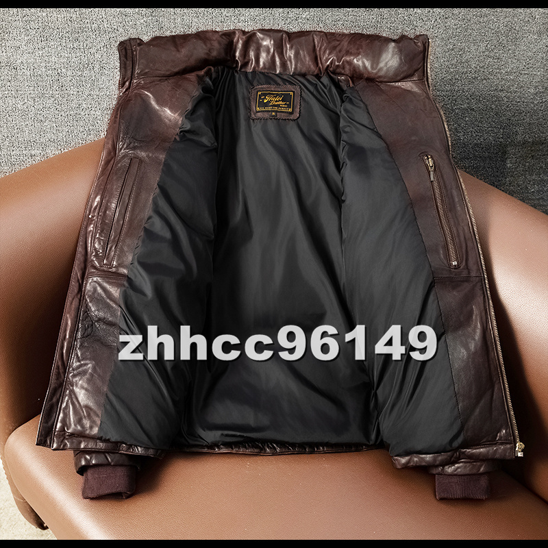 ■美品■メンズ 革ジャン ダウンジャケット 最上級 羊革 レザージャケット スタンドカラー ダウン 厚手 超防寒 ダウンコート M~5XL
