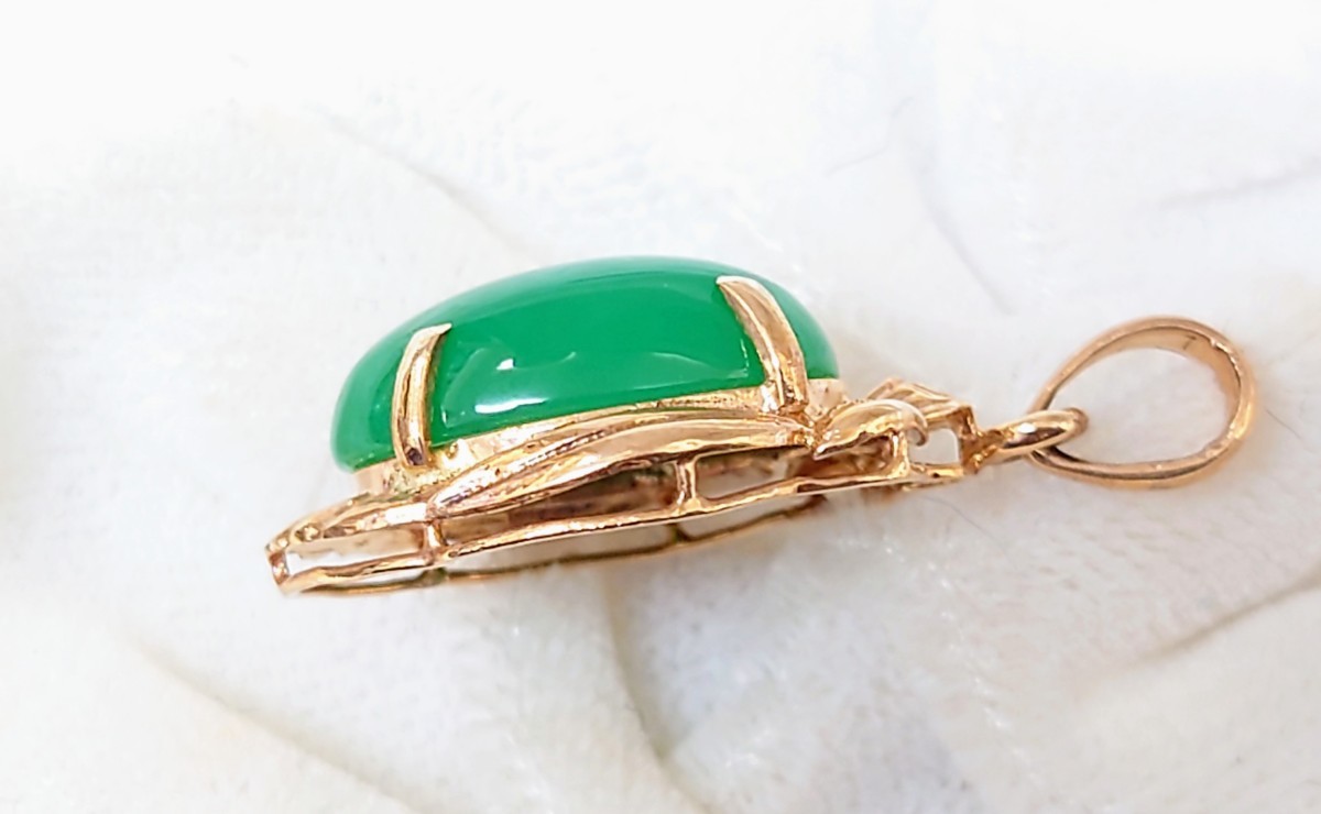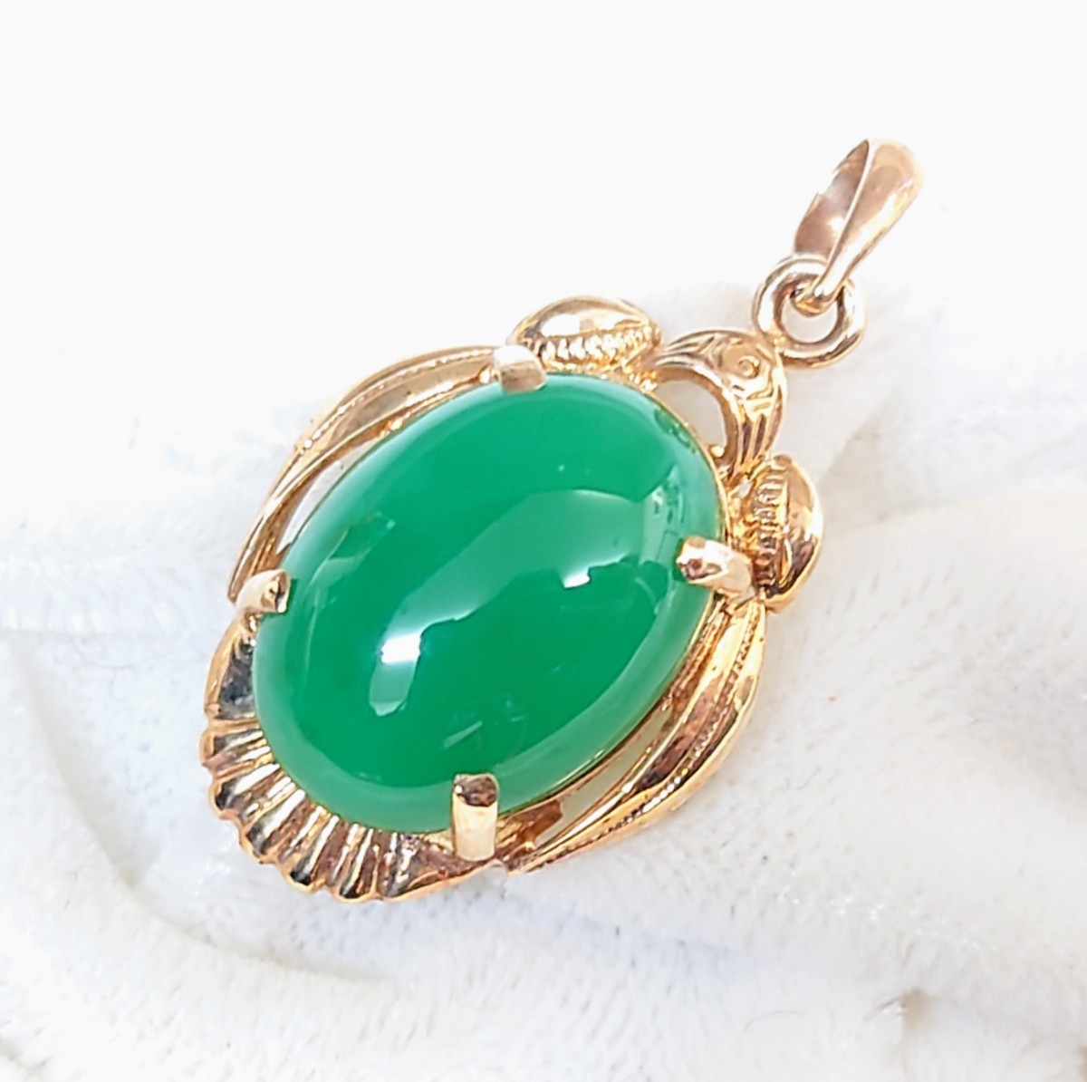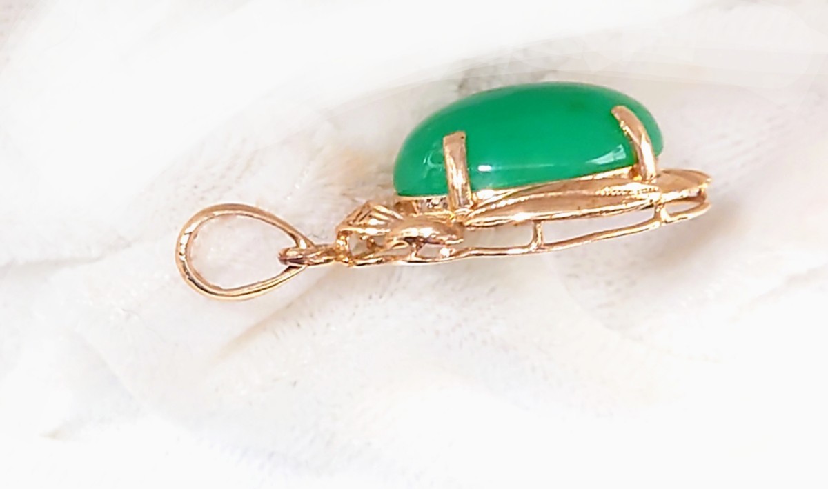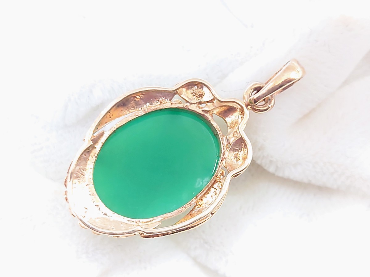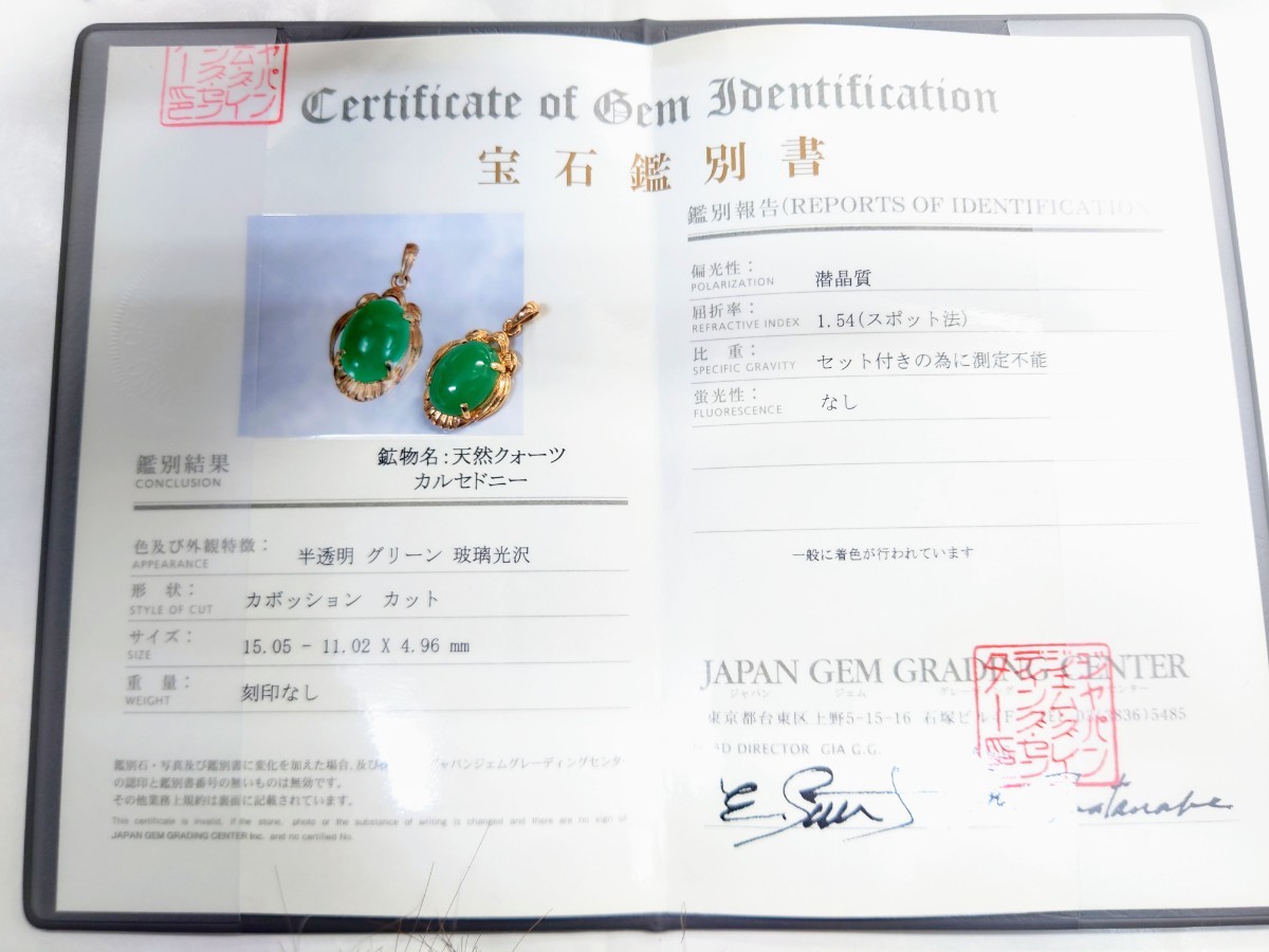 18K ネックレス トップ 天然 クォーツ カルセドニー グリーン 鑑別書 アンティーク ジュエリー ☆jh11☆20