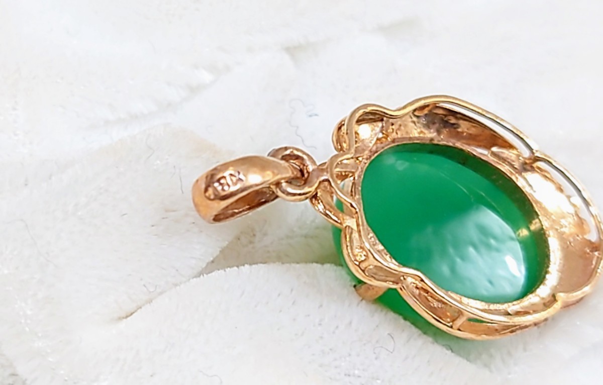 18K ネックレス トップ 天然 クォーツ カルセドニー グリーン 鑑別書 アンティーク ジュエリーの出品です。