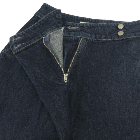 【仕様】パンツ デニム ラップ調 ワイド コクーン調 前後にポケットあり ジップフライ、ボタン、2つボタン留め