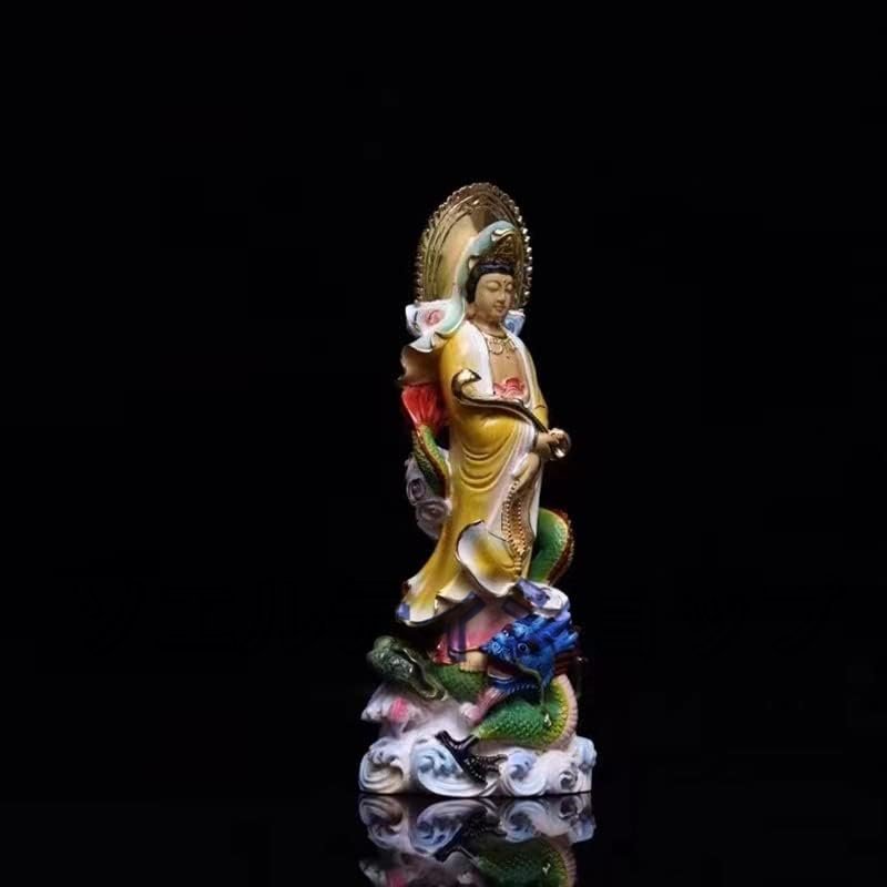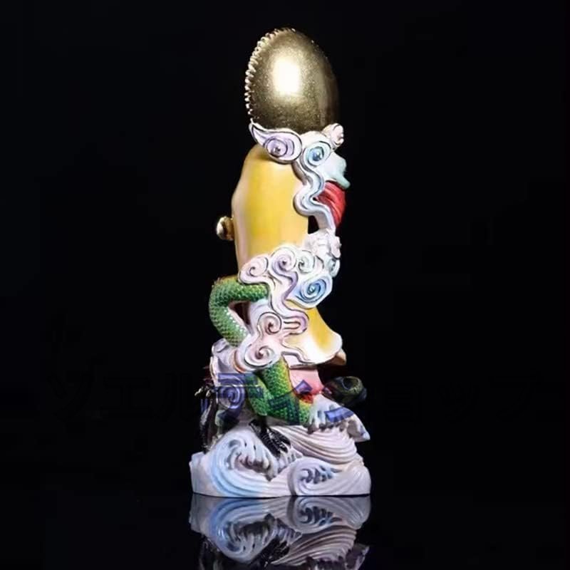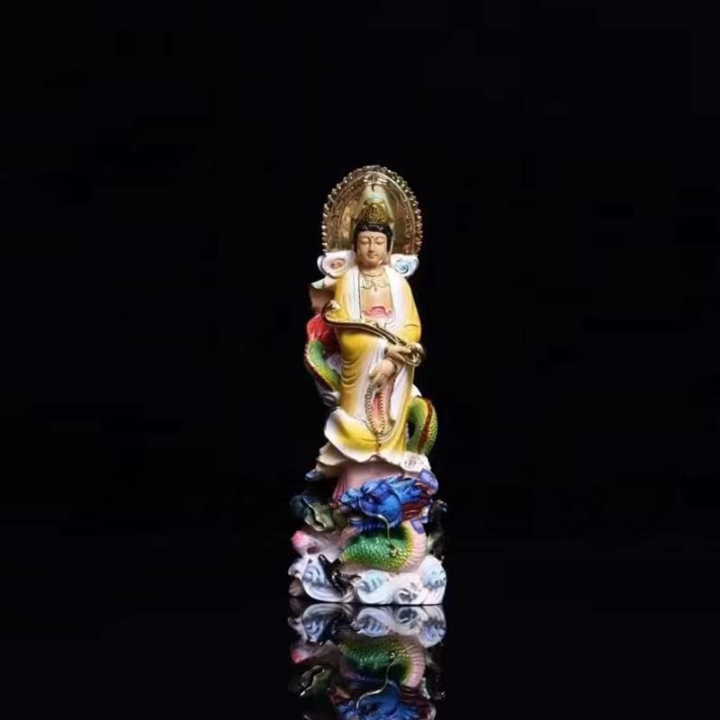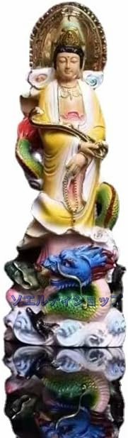 人気美品☆木彫り黄楊仏像 観音像 【如意龍乗観音】 龍観音 置物仏壇仏像 風水 開運 祈る 厄除け 柘植の木 (彩画:高さ22cm)