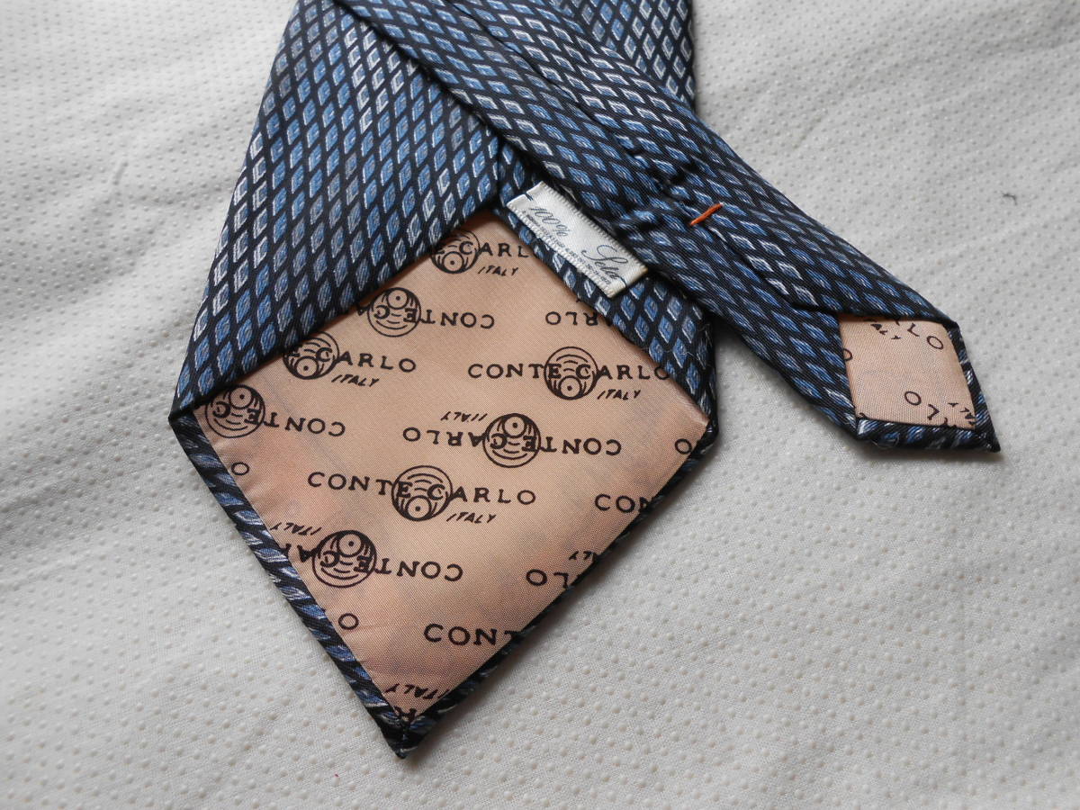 C480美品CONTE CARLOコンテカルロひし形模様総柄厚手ネクタイ
