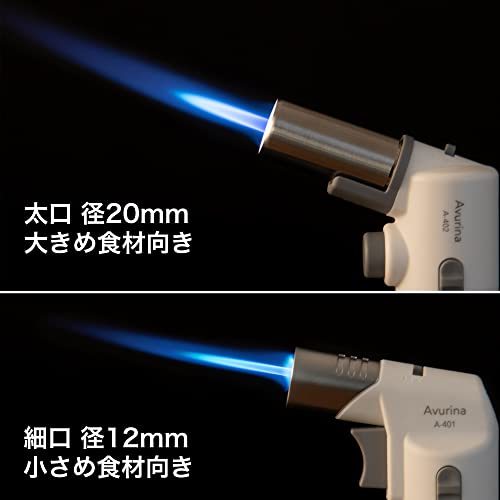 太口(20mm)・ホワイト A-402・・Style:太口(20mm)Color:ホワイト・【経済的なガス充てんタイプ】ご家庭にあるカセットガスなどを充てんして繰り返し使用ができるので経済的。・【ガス充てん済ですぐに使える】初回使用時からガスが充てんされているのですぐに使用可能。・【コンパクトで扱いやすい】しっかりと手で握れるサイズ感でバーナーを初めて使う方におすすめ。コンパクトにキッチンの引き出しや棚などへ収納可能。・【広範囲の太口タイプ】大皿料理への炙りなどにもおすすめ。 ※火口径φ20mm・【火炎温度】 800℃1 300℃●【経済的なガス充てんタイプ】ご家庭にあるカセットガスなどを充てんして繰り返し使用ができるので経済的。●【ガス充てん済ですぐに使える】初回使用時からガスが充てんされているのですぐに使用可能。●【コンパクトで扱いやすい】しっかりと手で握れるサイズ感でバーナーを初めて使う方におすすめ。コンパクトにキッチンの引き出しや棚などへ収納可能。●【仕上げやすい細口タイプ】お寿司やお菓子などの細か炙りなどにもおすすめ。 ※火口径φ12mm●【火炎温度】 800℃1 300℃●【発熱量】0.58kW(500kcal/h)●【点火方式】圧電着火方式