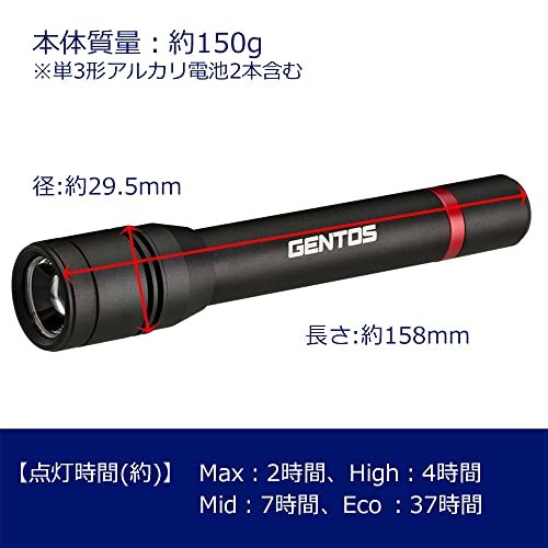 ・ブラック 直径29.5×158mm RX-332D・・Color:ブラックSize:直径29.5×158mm・サイズ:約直径29.5×158mm、本体重量:約150g (電池含む)・セット内容・付属品:本体、ストラップ、テスト用電池 (単3形アルカリ電池×2本)・明るさ:Max/480ルーメン・High/330ルーメン・Mid/170ルーメン・Eco/30ルーメン、使用電池:単3形アルカリ電池×2本・実用点灯:Max/2時間、High/4時間、Mid/7時間、Eco/37時間・機能:2m落下耐久、耐塵・耐水仕様 (IP66準拠)、最大照射距離:約152mスライドフォーカスコントロール搭載。単3形電池×2本モデルのフラッシュライト スライドフォーカスシステム ヘッド部分を前後させることで、片手で簡単に照射角調整をする事ができる インスタントオフスイッチ 点灯後、一定時間経過後にスイッチを押すと、どのモードからでも一回の操作で消灯できる Maxモードを含む4段階の調光機能 耐塵・耐水仕様 (IP66準拠) &2m落下耐久 テールスイッチ