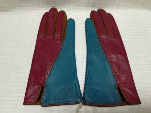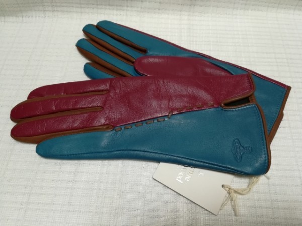 sale値下げ☆新品☆ヴィヴィアン/羊革手袋/2色斜め切替/マゼンダ×ブルー20cm