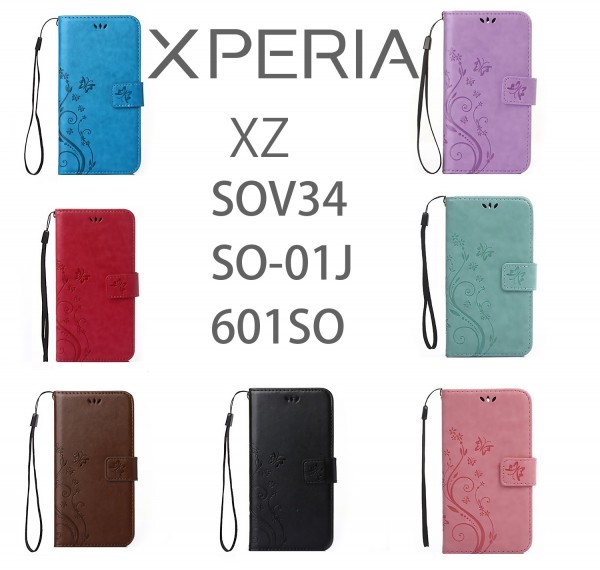 ♪激安 大人気 可愛いバタフライ柄のSONY Xperia XZ (ドコモ:SO-01J au:SOV34 softbank: 601SO)のレザーケースです