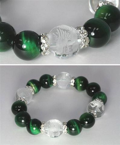 四神ブレス 緑虎目14mm&水晶四神16mm No39