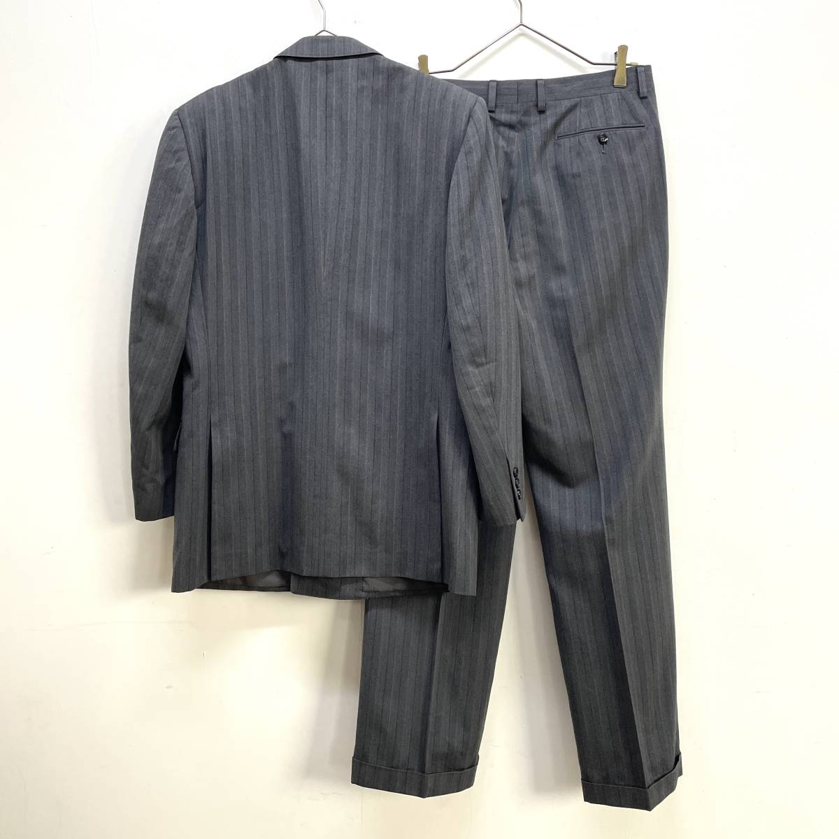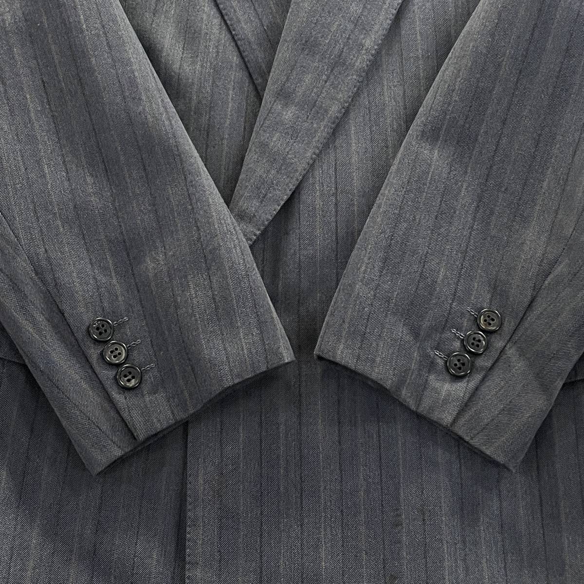 ☆LANVIN ランバン セットアップ スーツ ストライプ柄 カシミヤ混 ダブルテーラードジャケット スラックス グレー【送料一律/同梱可能】C