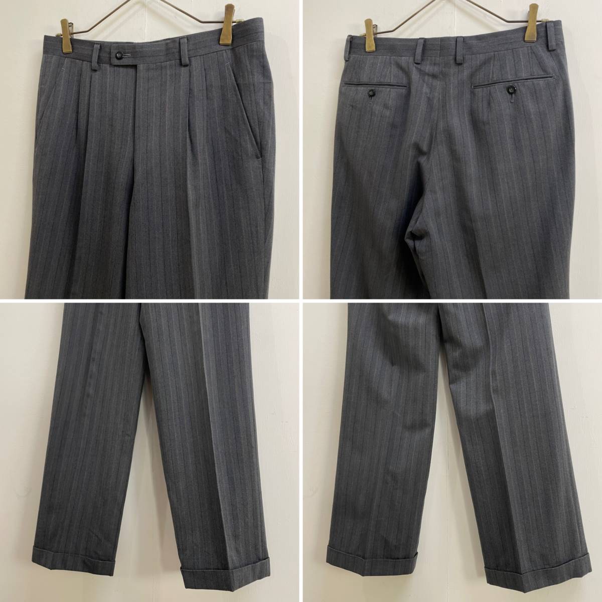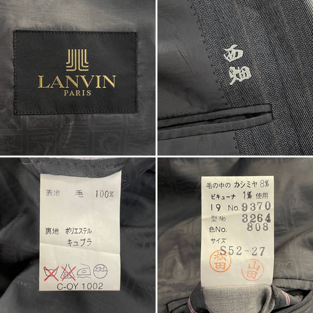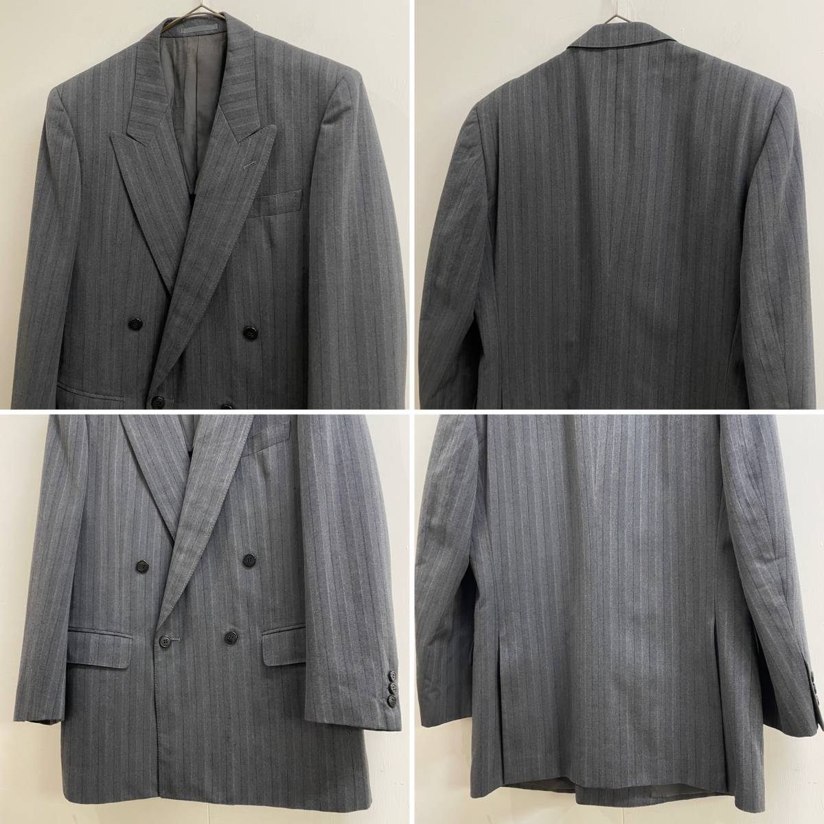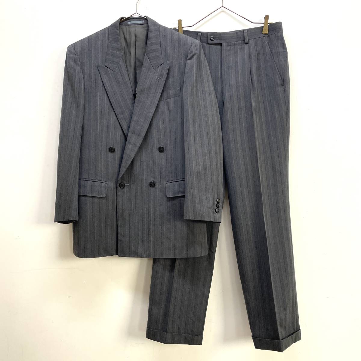 ☆LANVIN ランバン セットアップ スーツ ストライプ柄 カシミヤ混 ダブルテーラードジャケット スラックス グレー【送料一律/同梱可能】Cの出品です。