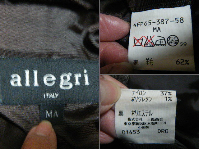 allegri アレグリ 羊毛ハーフコート ジャケット サイズMA A0107 ブラウングレー 三陽商会