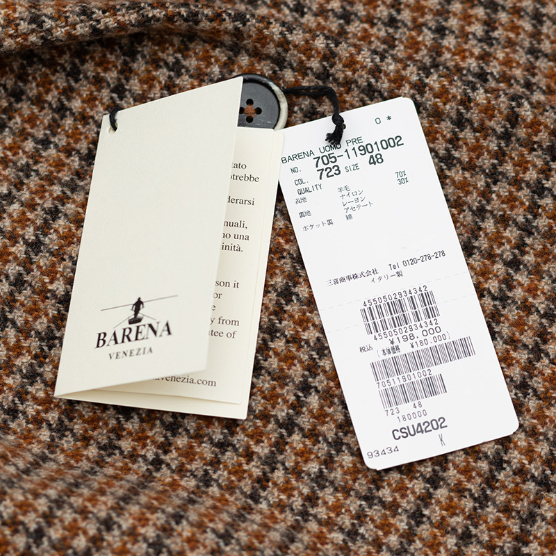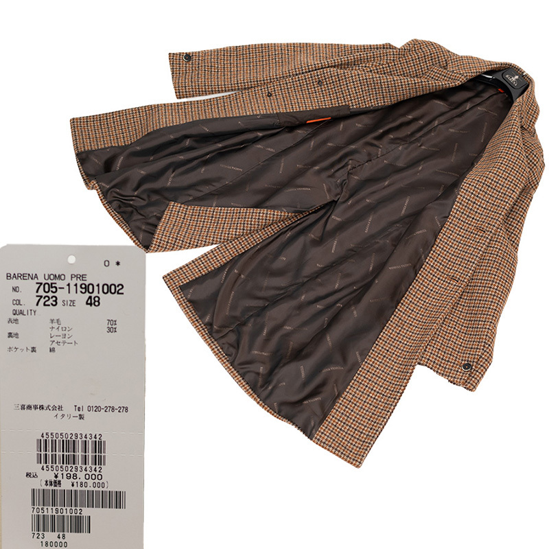 csu4202b 新品 /BARENA バレナ【48L】イタリア製羊毛ハウンドトゥースシングルチェスターコート 送料無料Yahoo!かんたん決済 即決価格