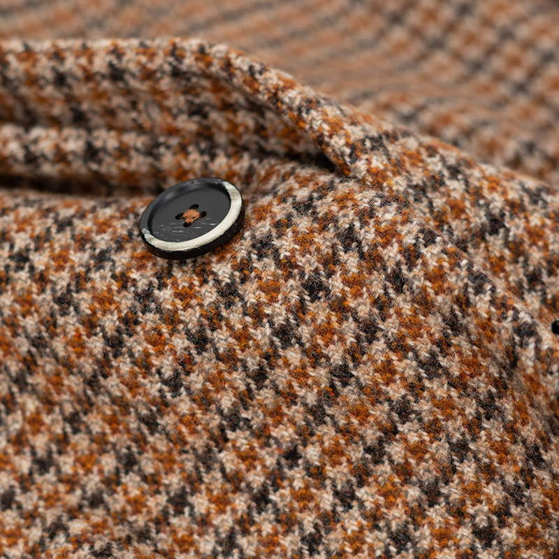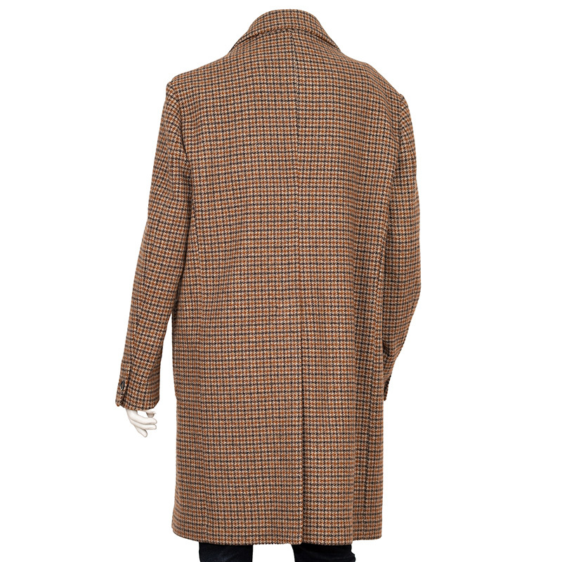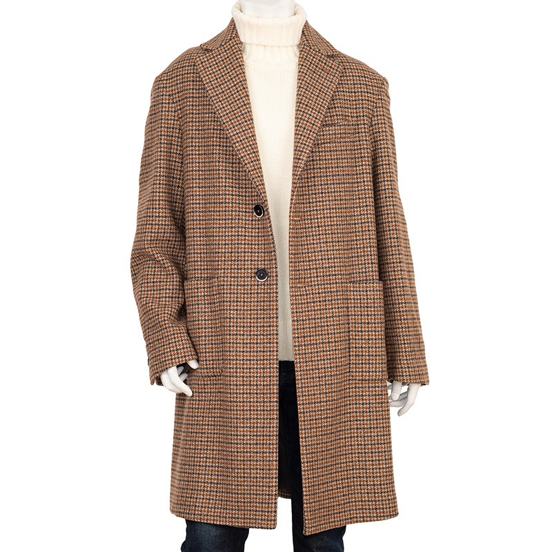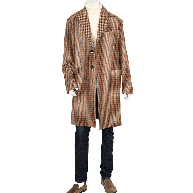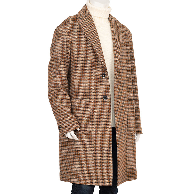 【商品名】イタリア製羊毛ブラウン ハウンドトゥースシングルチェスターコート