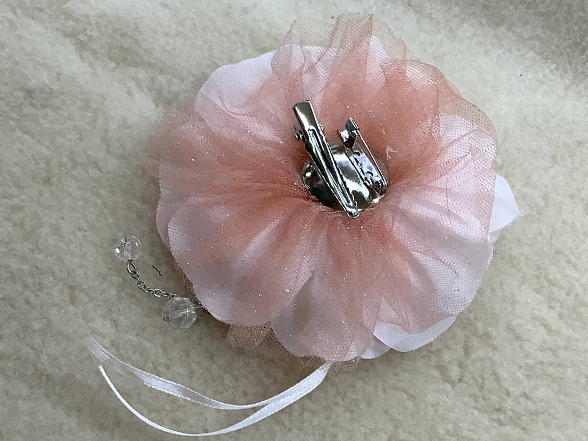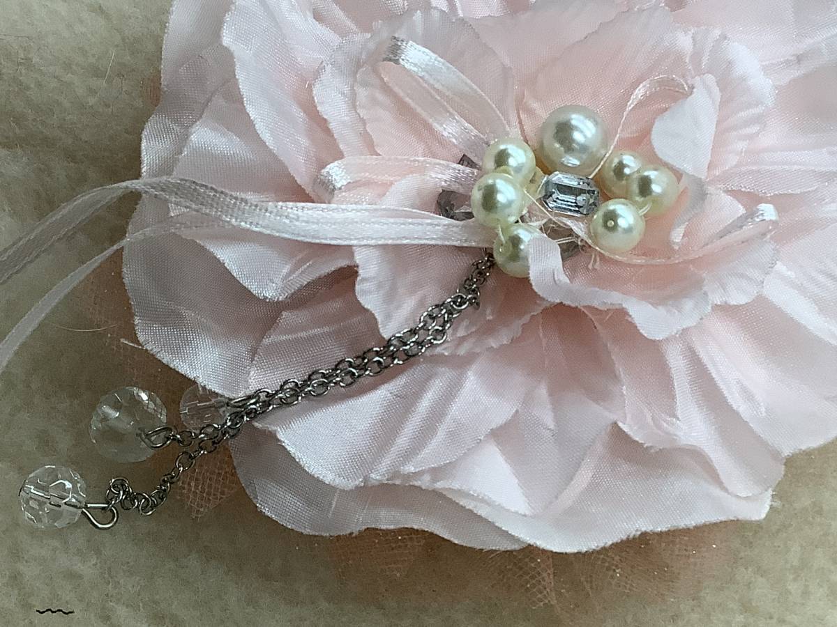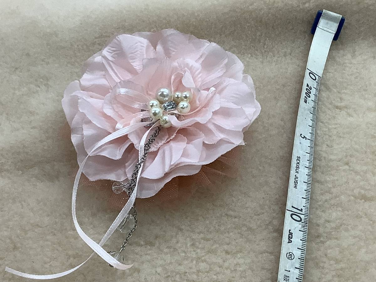 リボンやラインストーン付きのチェーンもついて豪華なコサージュです。