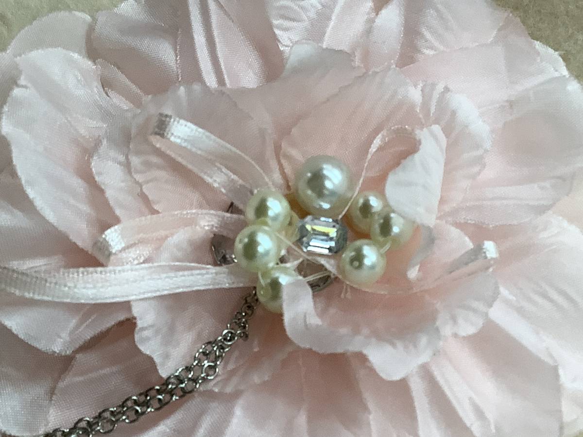 送料無料 未使用品ピンクパールラインストーンリボンつき大きめコサージュ豪華入園入学卒園卒業発表会