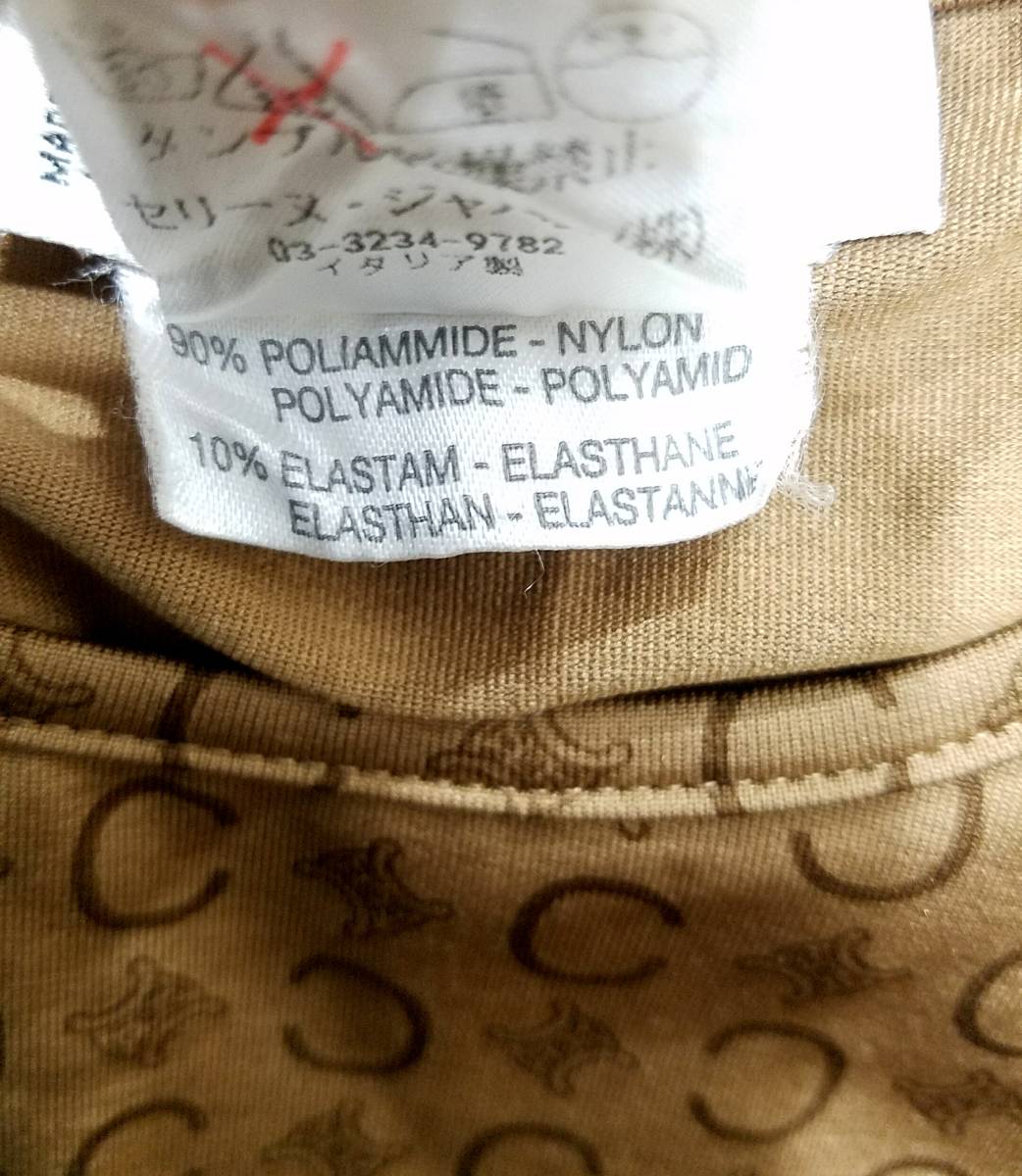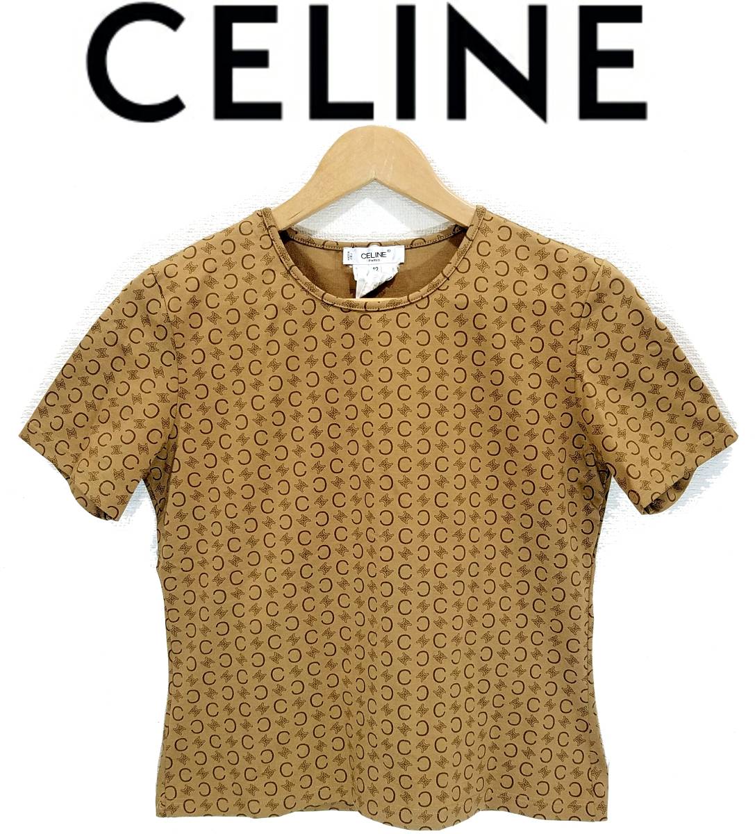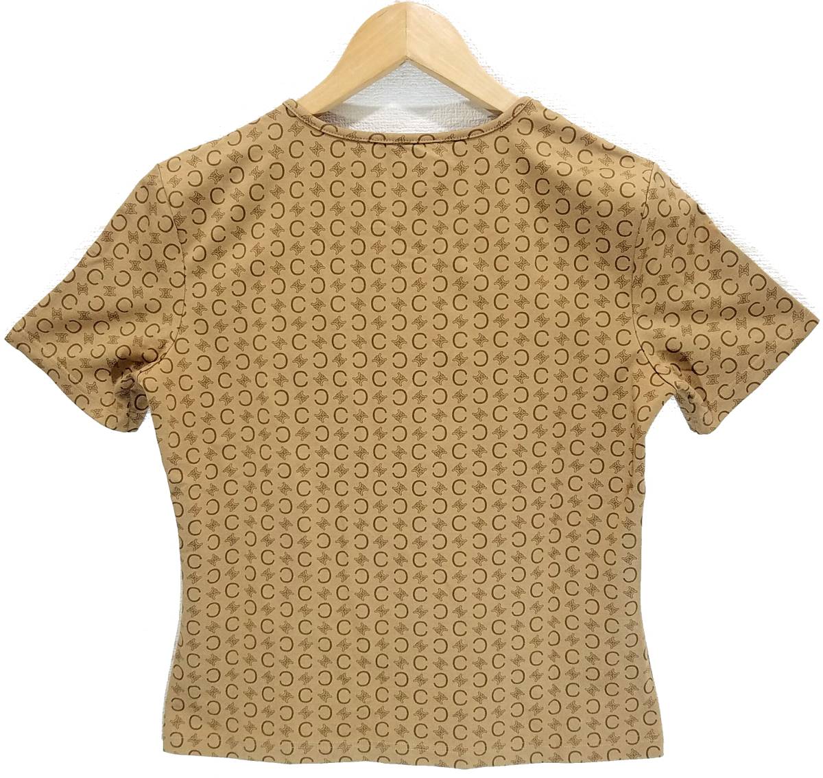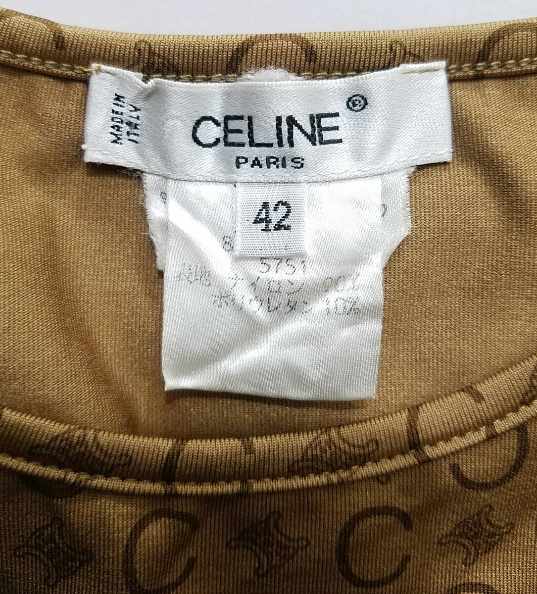 CELINE マカダム総柄モノグラムTシャツ ゴールド系ブラウン GOLD レディース42(L) ストレッチ素材 イタリア製 ウエストシェイプ 国内正規品 セリーヌ・ジャパン(株) 送料430円~ | ||||||||||||||||||||||||||||||||||||||||||||||||||||||||||||
