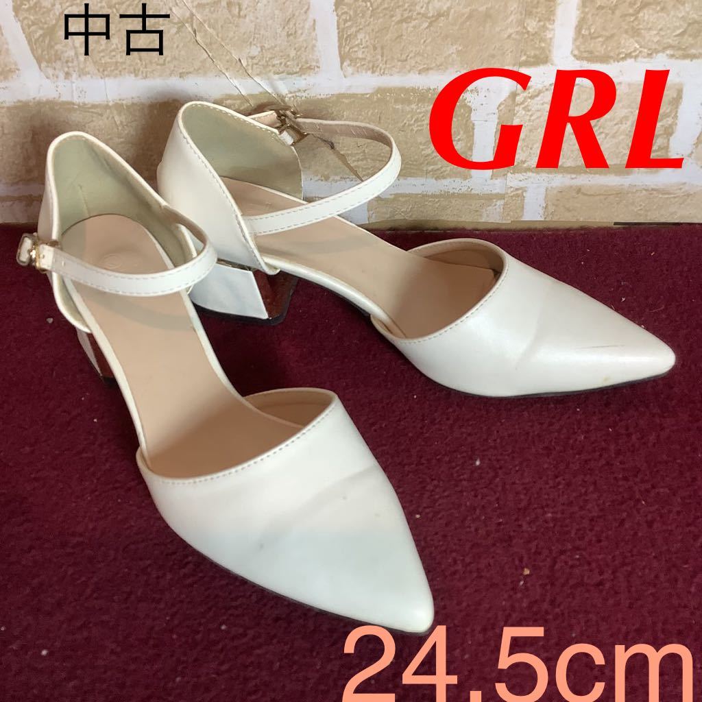 【売り切り!送料無料!】A-296 GRL!サイドオープンパンプス!24.5cm!アンクルストラップ!太めヒール!歩きやすい!中古!