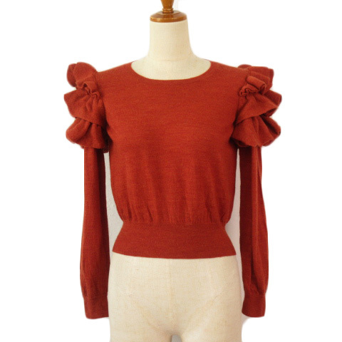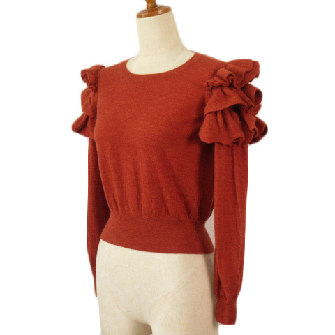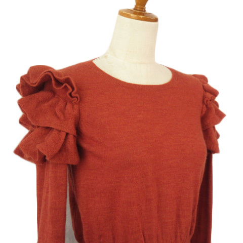 ロイスクレヨン Lois CRAYON セーター ニット フリル ラッフル ウール M テラコッタ レディース